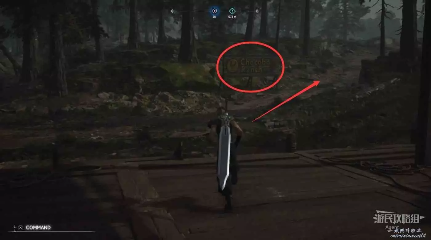 出牧場大門左拐,看到地上有陸行鳥的腳印,跟隨腳印走就能找到陸行鳥。