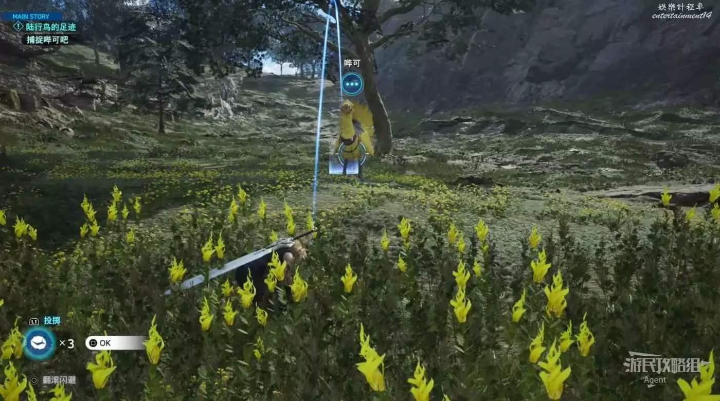 潛行時可使用翻滾迅速移動。撿地上的石頭,扔石頭引開陸行鳥的注意,然後悄悄從背後靠近騎上去。