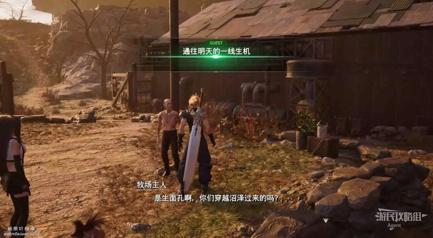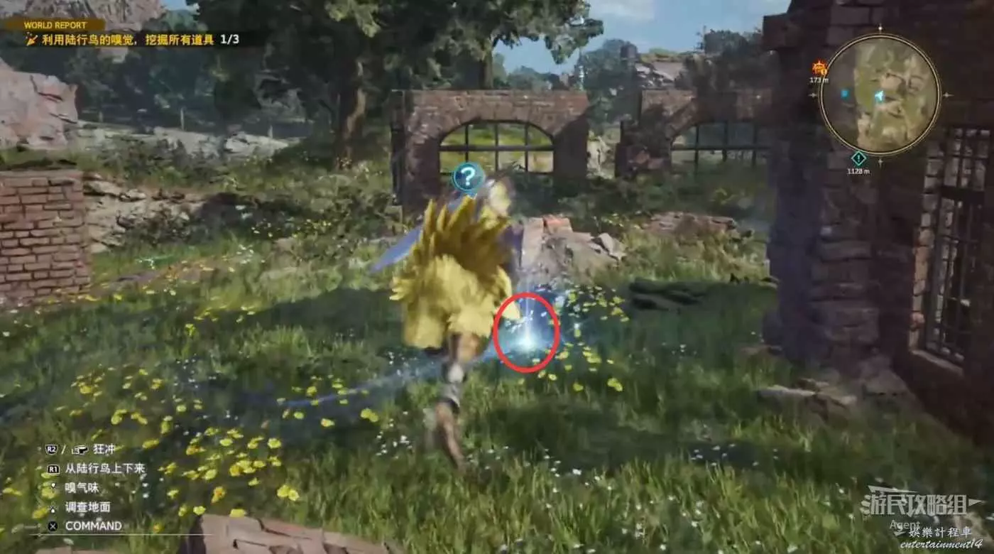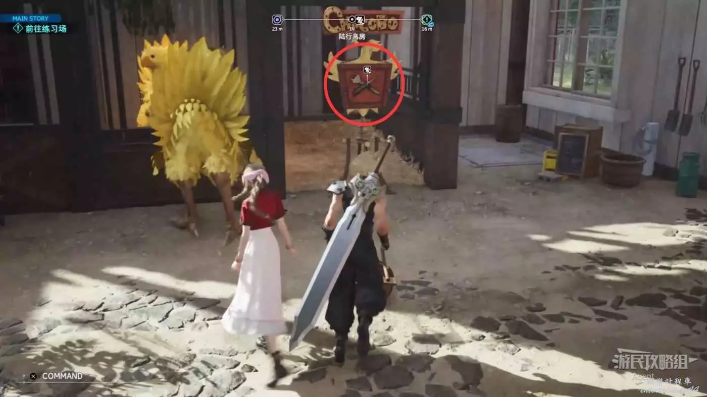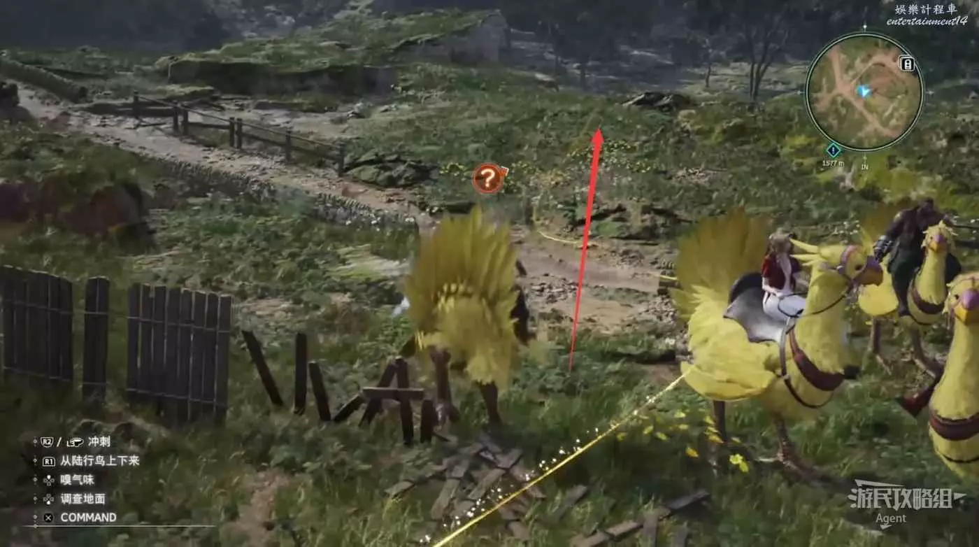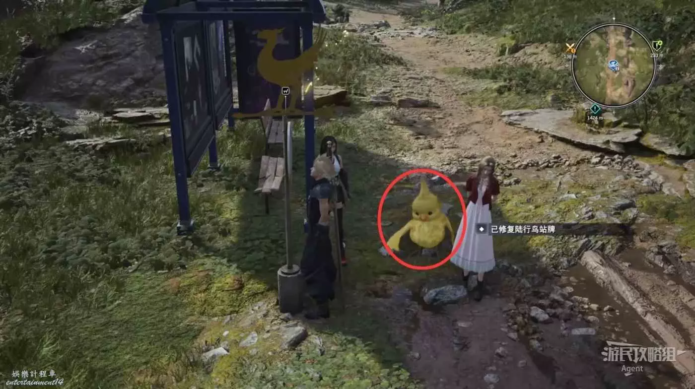 走下坡後,先往西走一點來到陸行鳥牧場,接到支線任務“通往明天的一線生機”。