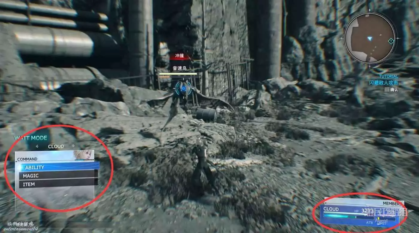 戰鬥時,需要用到指令系統,能力消耗的是血條下面的ATB(藍色條),魔法消耗的是MP(紫色條),紫色條下面的黃色條LIMIT滿了後可以放絕招。