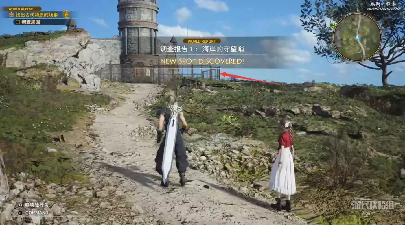 城門口還有個攝影師,他要你去找拍攝點(就在剛才的陸行鳥牧場附近)。去找到拍攝地點後,回來向他報告。