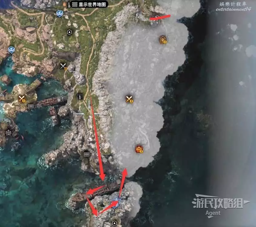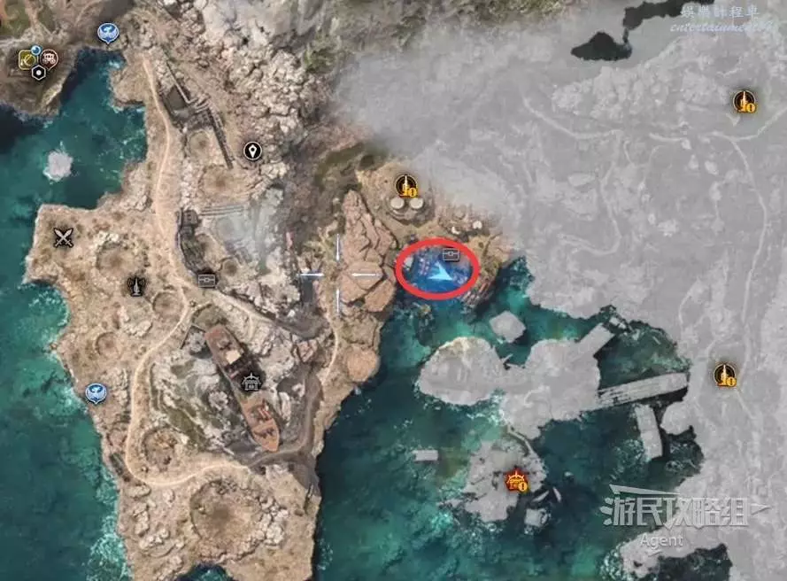 側珠諾大門有守衛暫時不讓進,但是附近區域可以探索,從南面上船再上島,繞一圈就可以過去。
