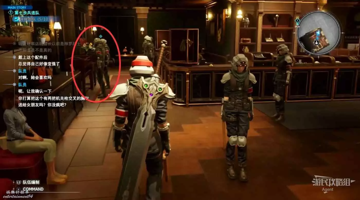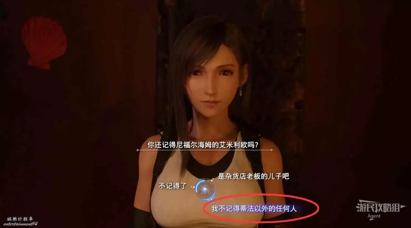 回旅館住店,樓上樓下隊友們的房間都能進去對話增加好感度。其他三人在樓下,蒂法在樓上你的房間隔壁。