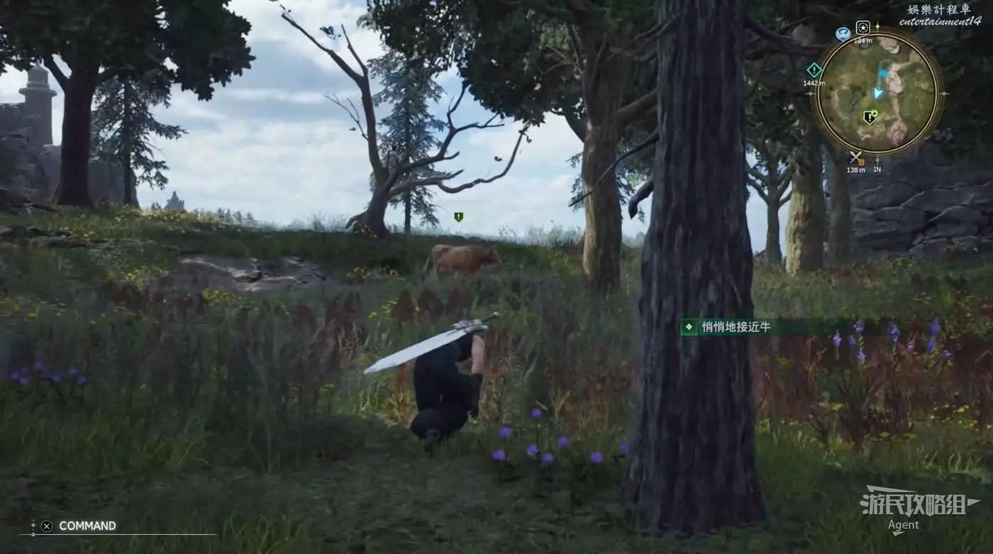 到基地西面的獵人之森,悄悄接近牛。