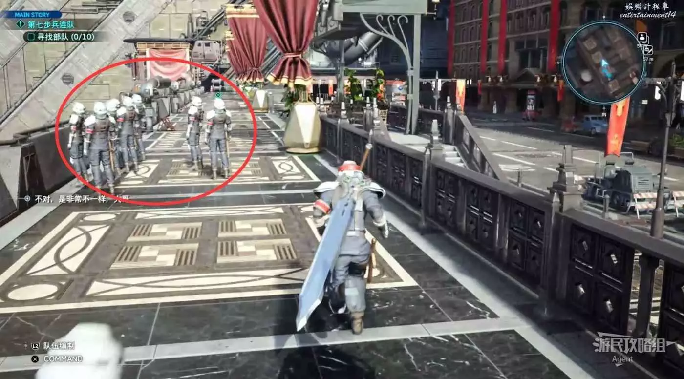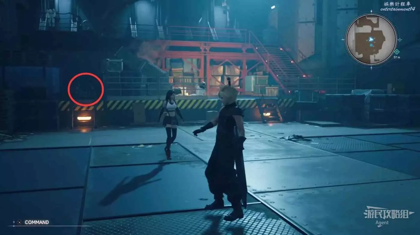 一路跟隨蒂法,注意搜刮寶箱,走到頭發現橋斷了過不去,蒂法會叫你回頭。