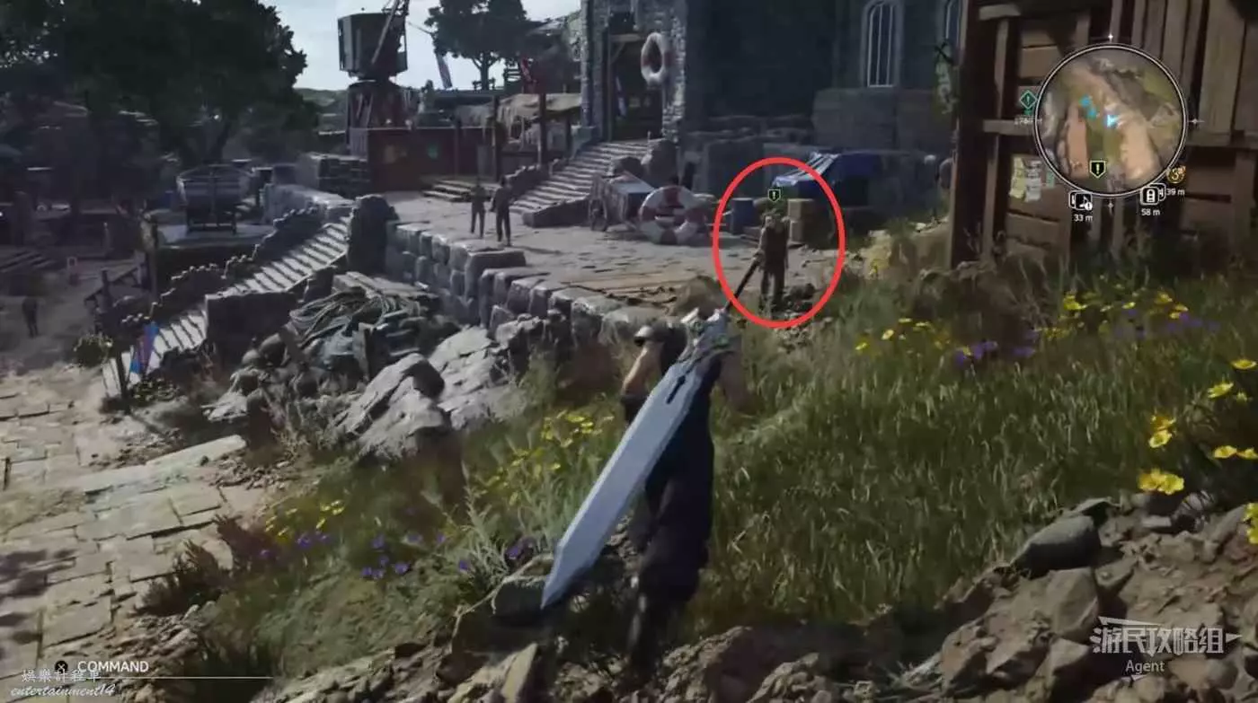 另一個委託人在小地圖外,從村子西面的路出去,走上坡到高處就能看到了。