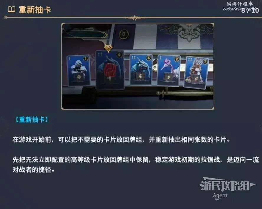 在牌局開始前,可選擇不需要的卡片放回重抽。等級較高的卡片一開始是無法放上棋盤的,所以建議先退回重抽,留到後面作為殺手鐧。