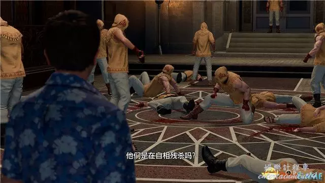 通過對話可以得知,澤城在暗示給桐生等人,這裡有嚴密的監控設備,你們需要“演戲”打鬥一場。
