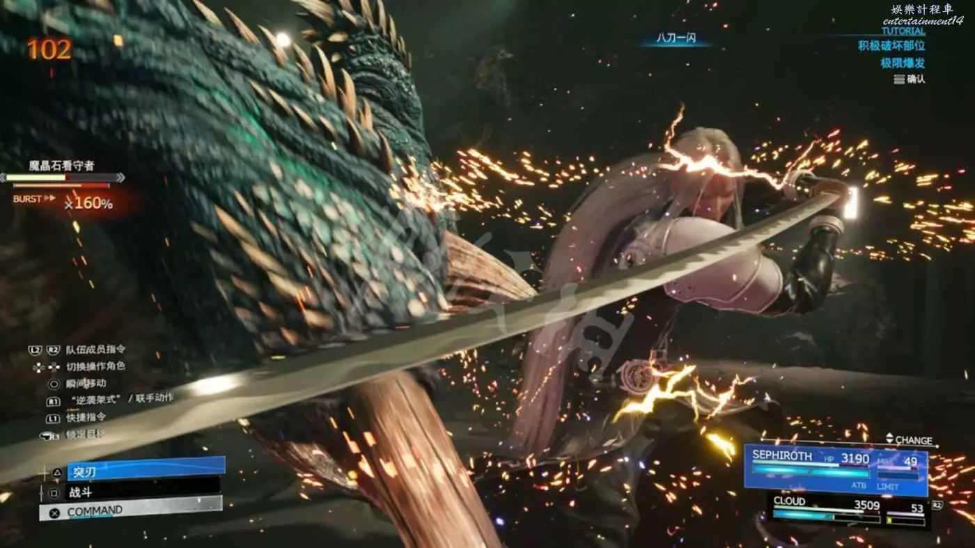 三分之一血量時會有一次小爆發,不過有塞菲羅斯在基本不成問題,爽就完事了。