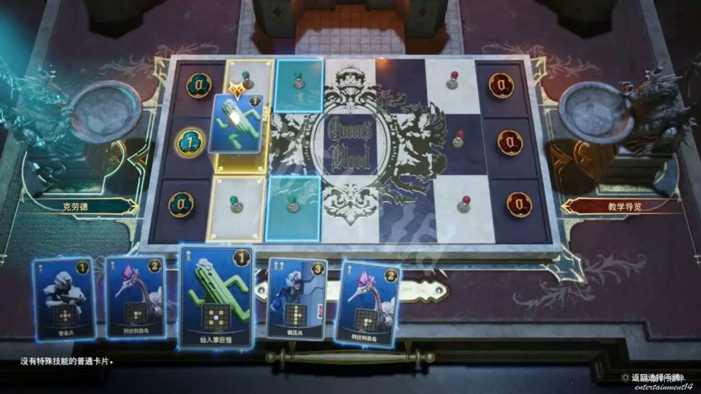 在遊戲第二章開始會獲得一套牌組,同時解鎖名為“女王之血”的卡牌遊戲。
