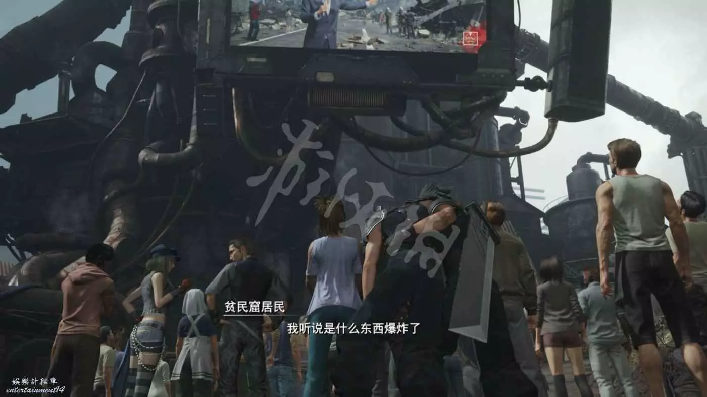 在神羅大廈變成廢墟後,紮克斯扶著重傷的克勞德出現在了貧民窟的人群當中。