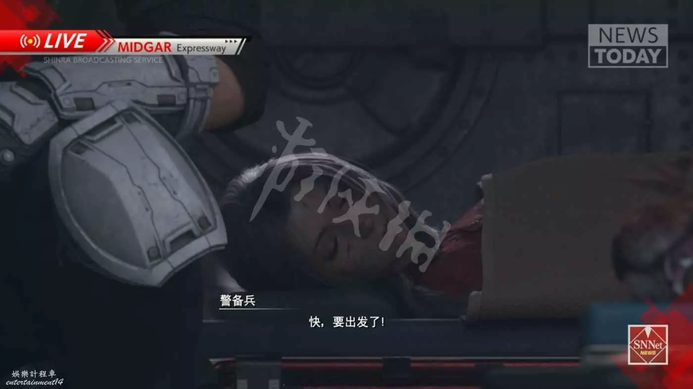 擊敗所有神羅士兵後紮克斯抱著愛麗絲逃到了一處廢墟,躲開了神羅士兵的搜查……