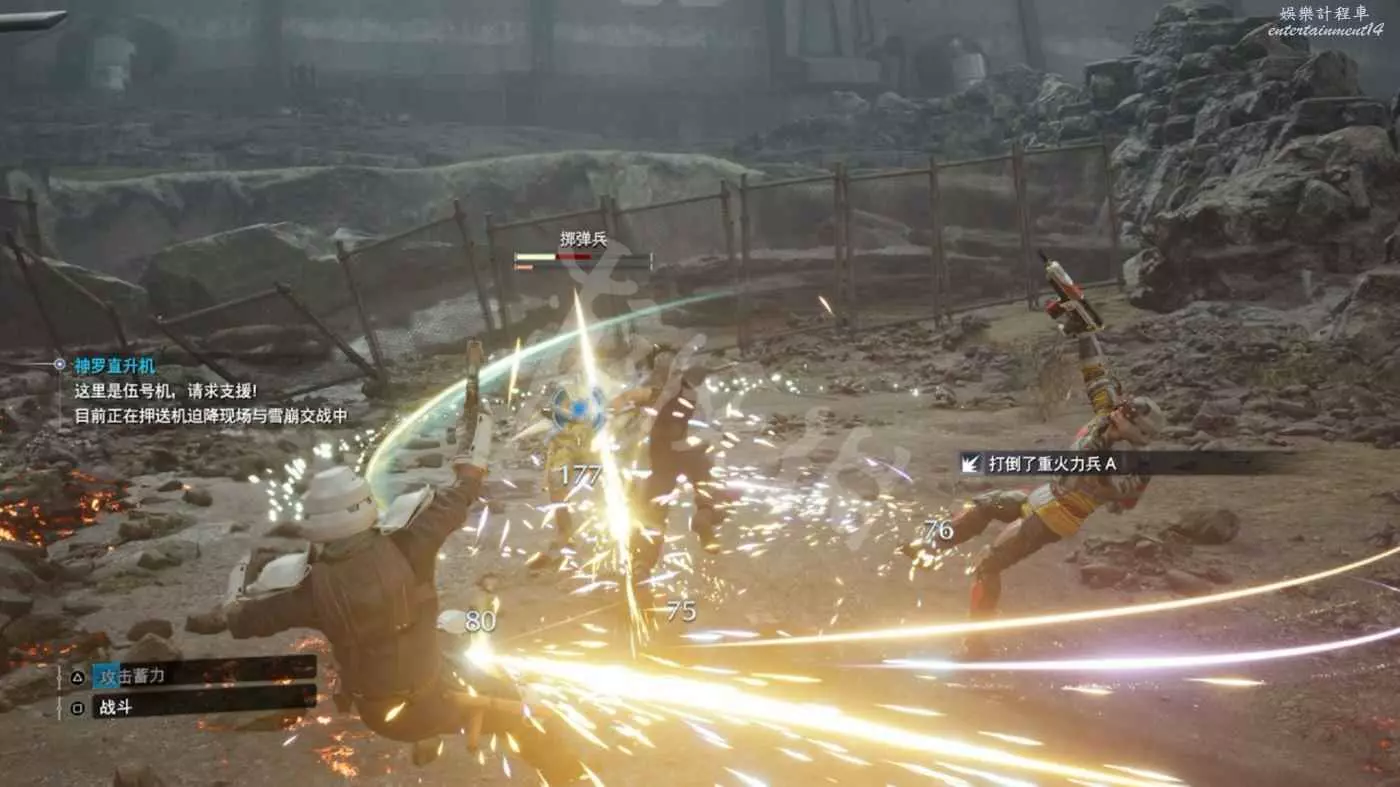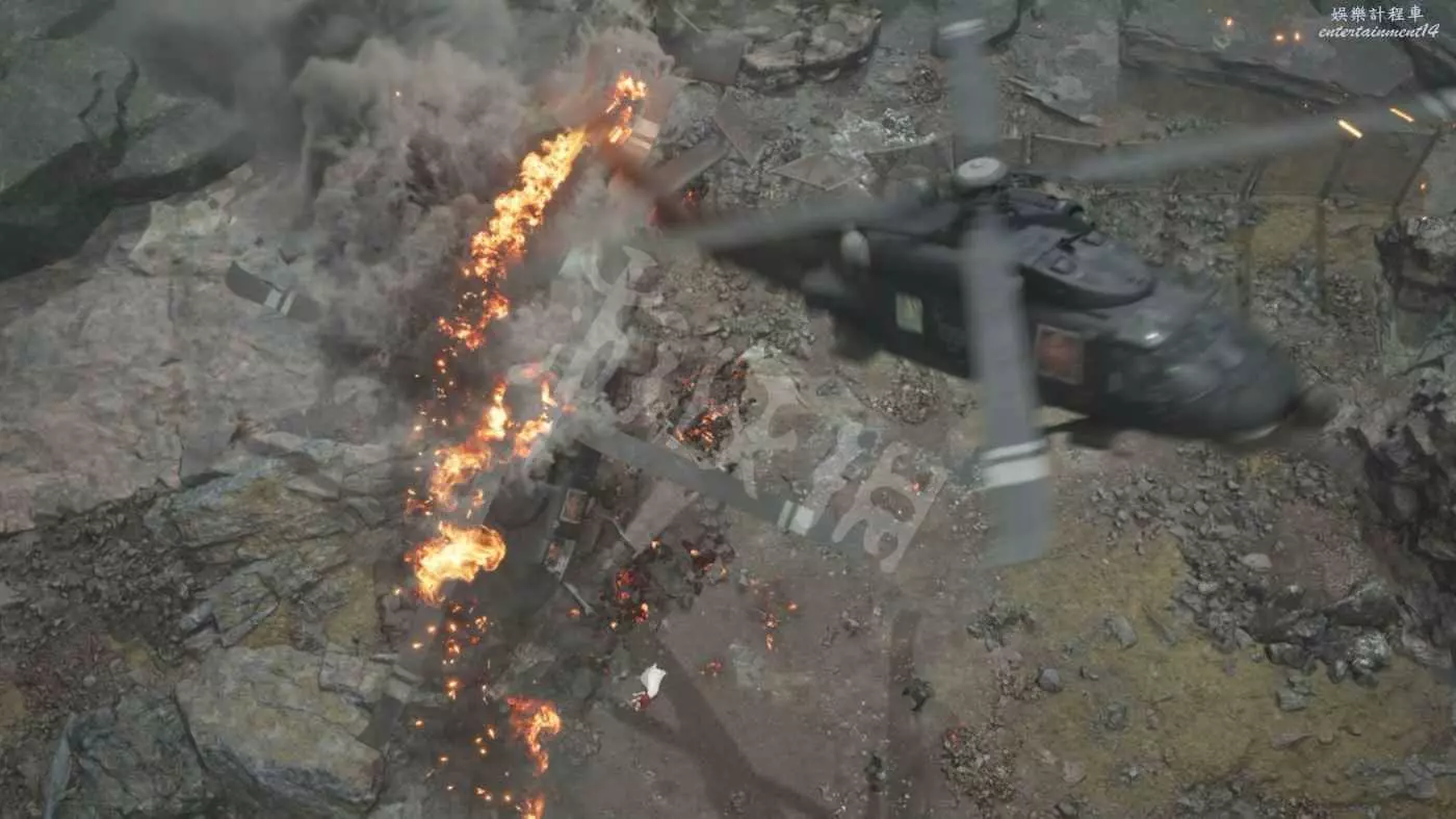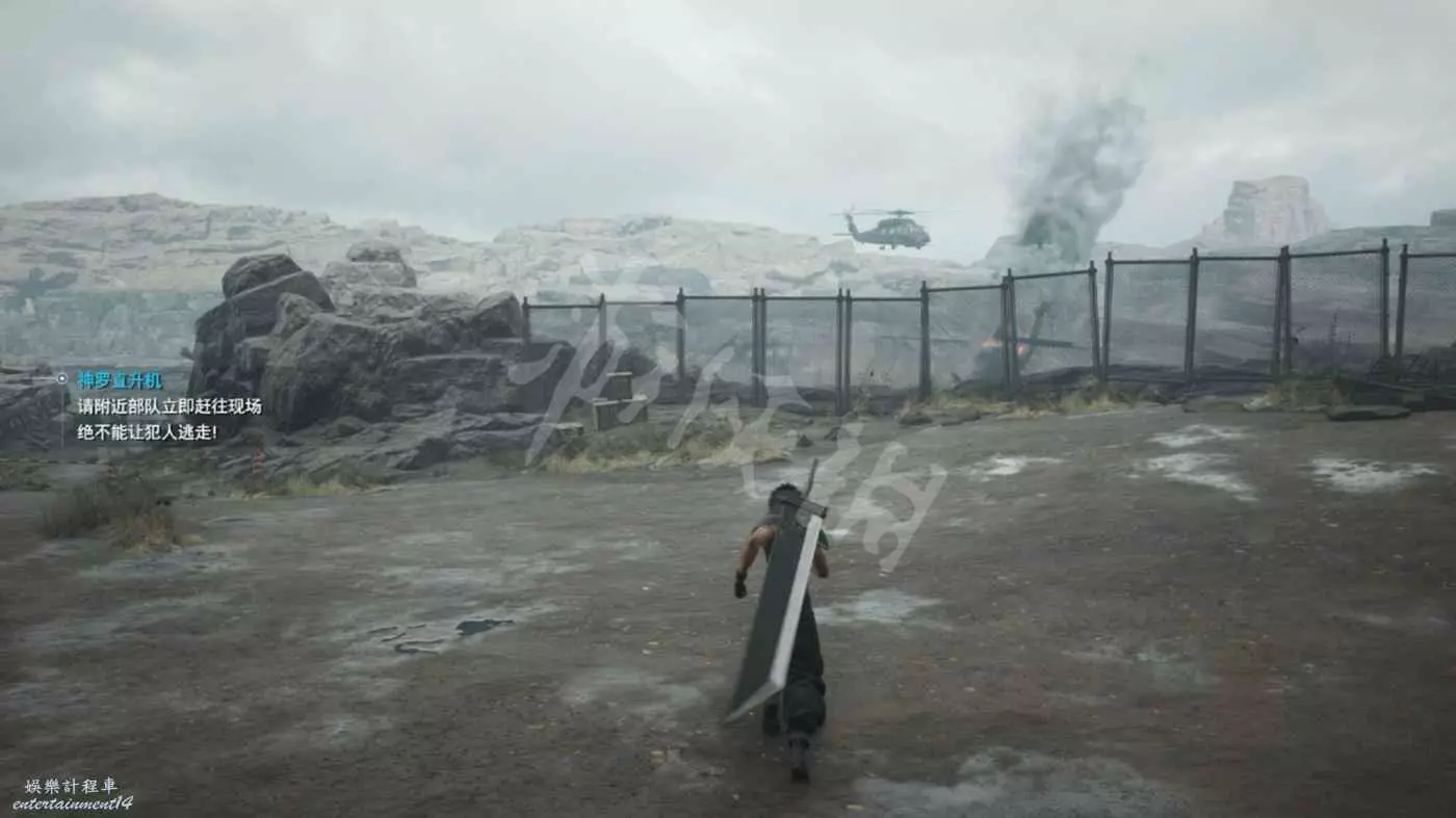來到墜機現場擊敗直升機周圍的神羅士兵。