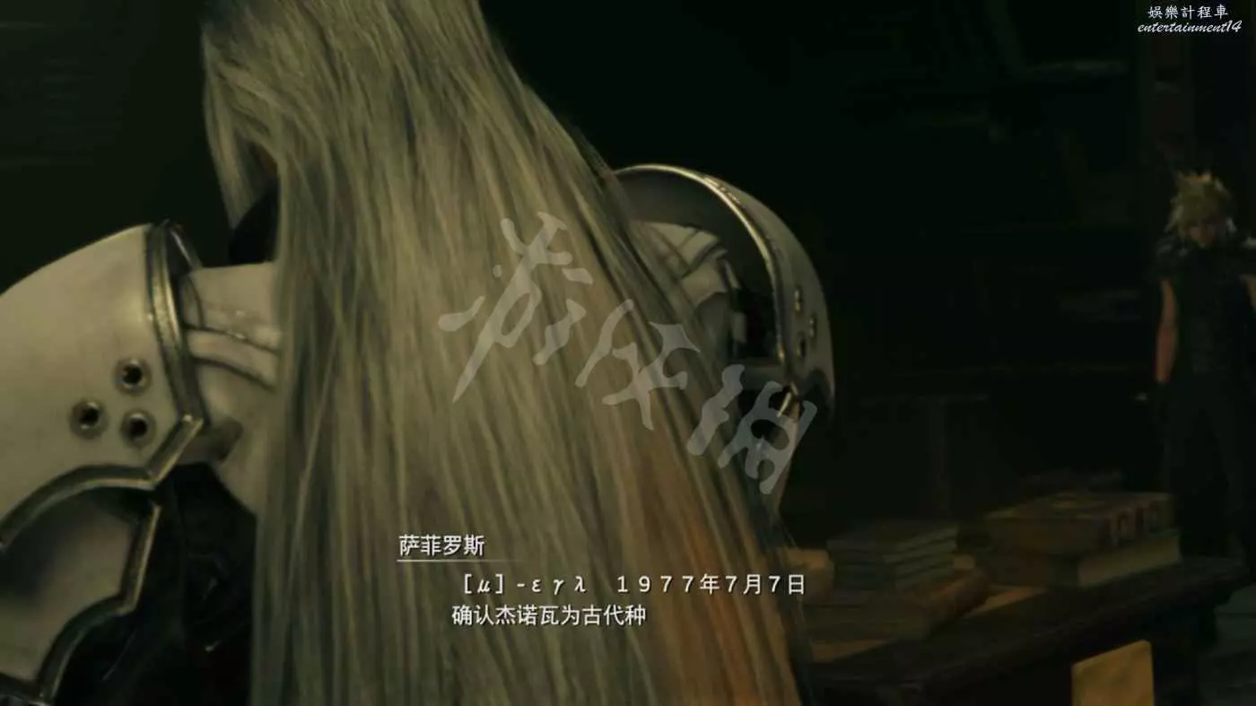 之後某天夜裡跟隨村民來到神羅公館,在地下資料室中找到沉迷閱讀資料不能自拔的塞菲羅斯。