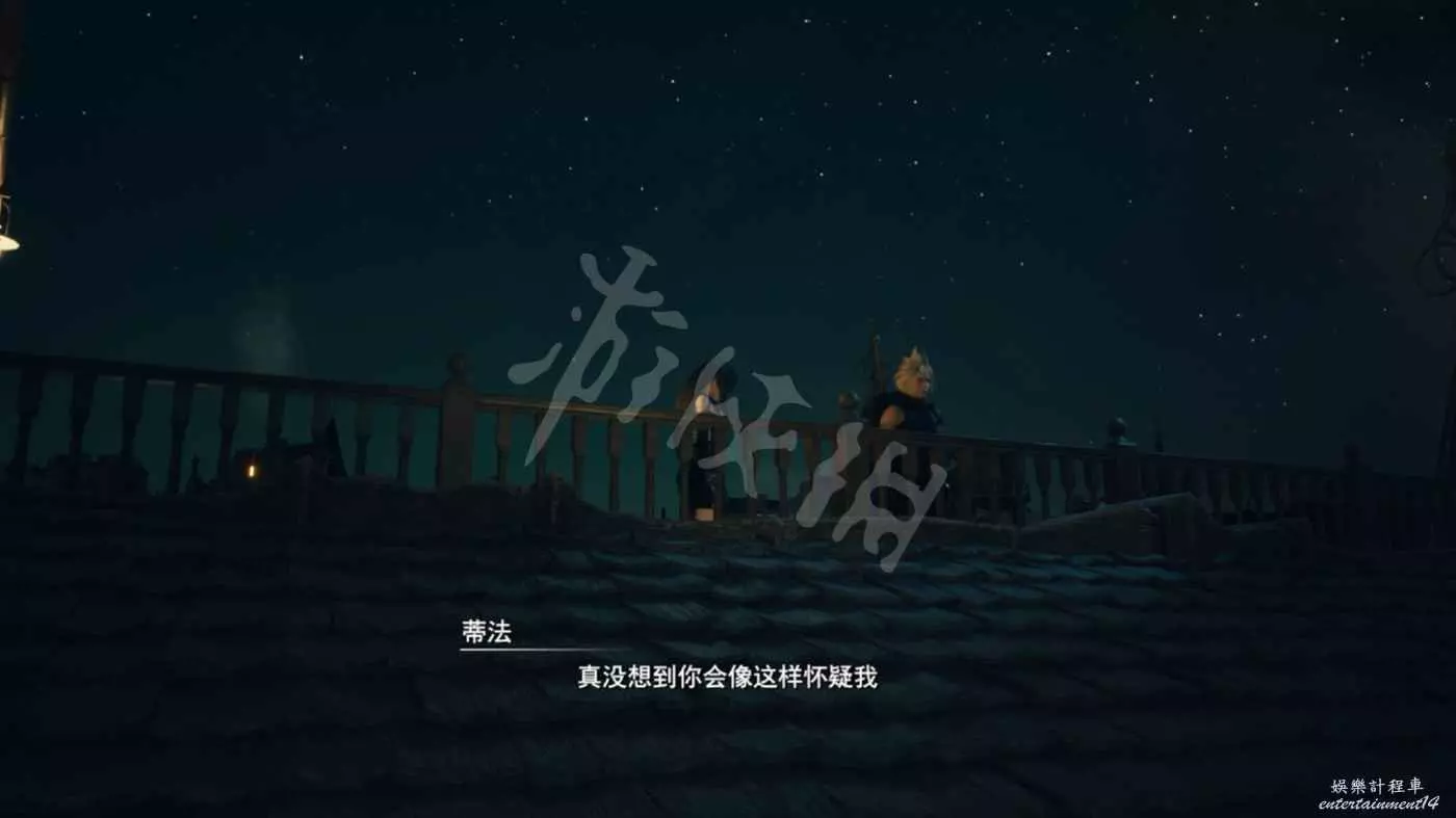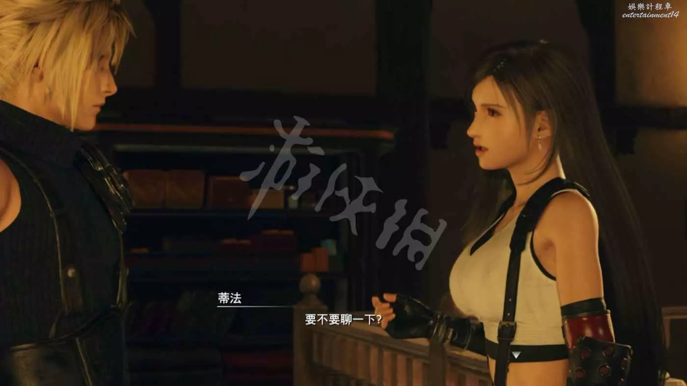 聊完五年前的故事後眾人準備休息,在其他人都入睡後,輾轉難眠的蒂法還是決定找克勞德出來談心。