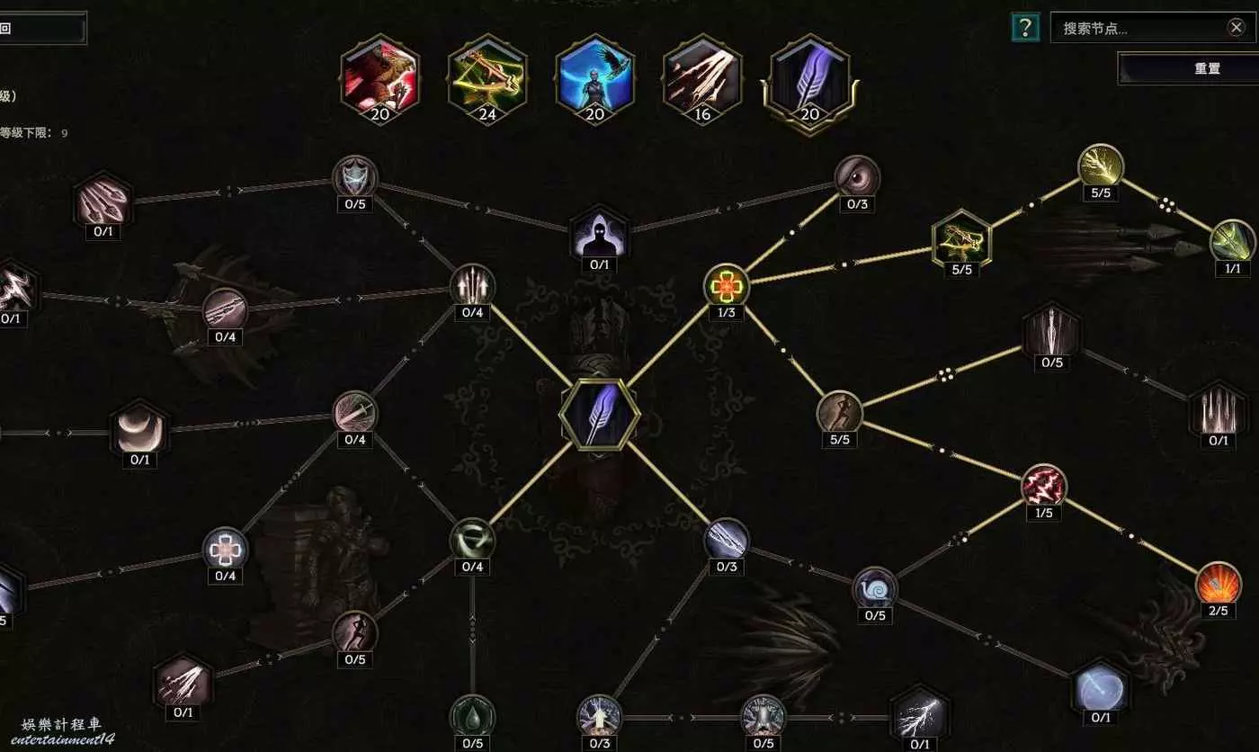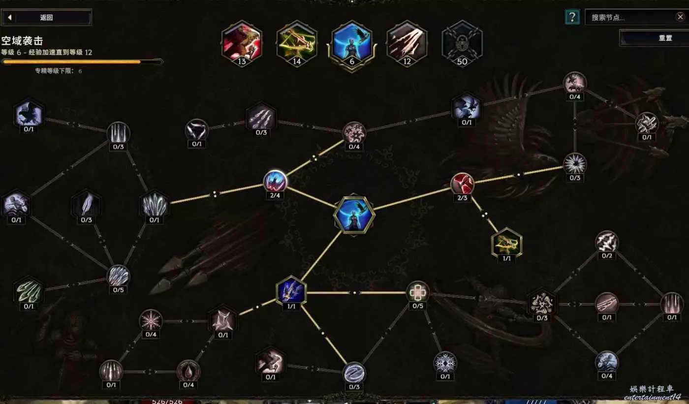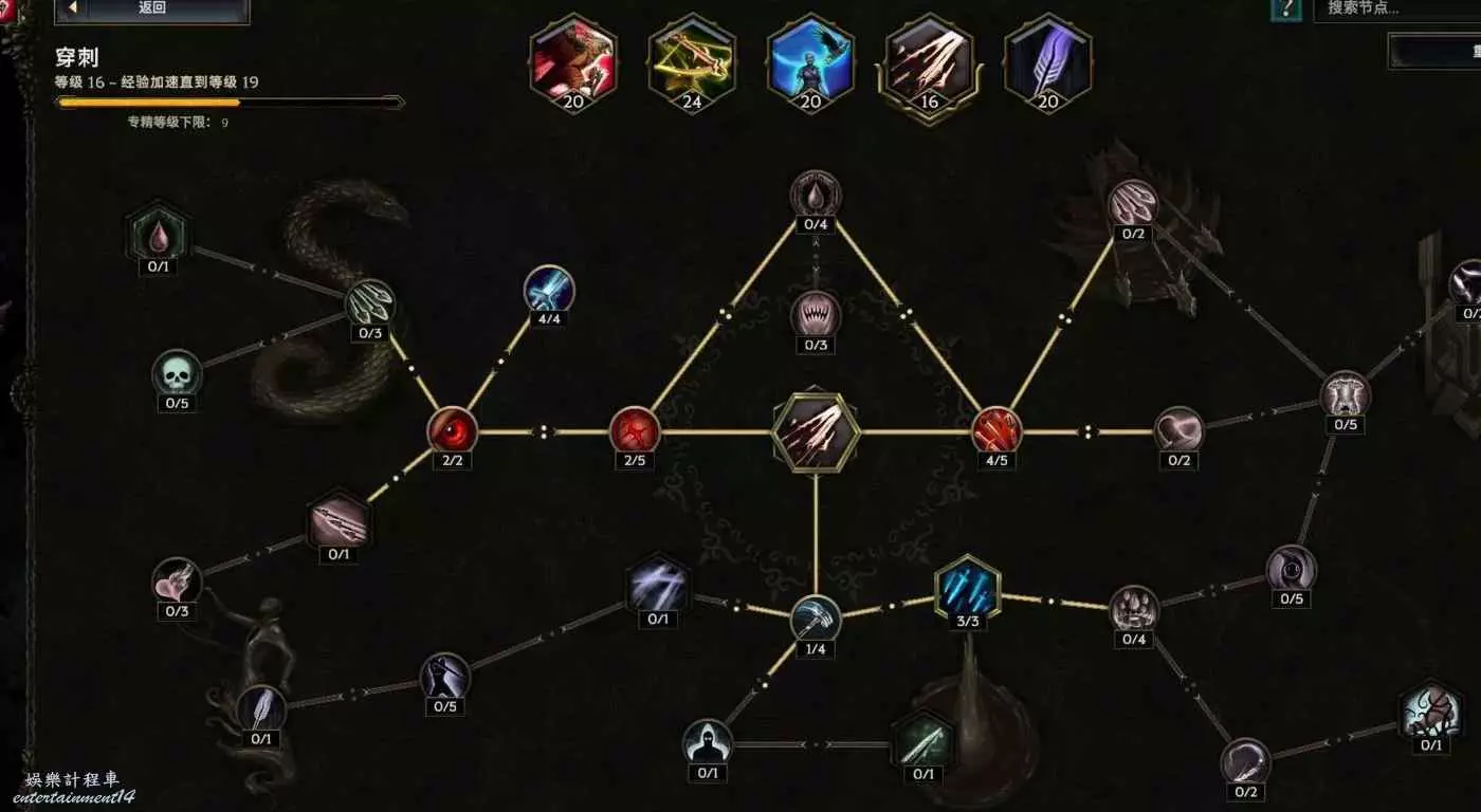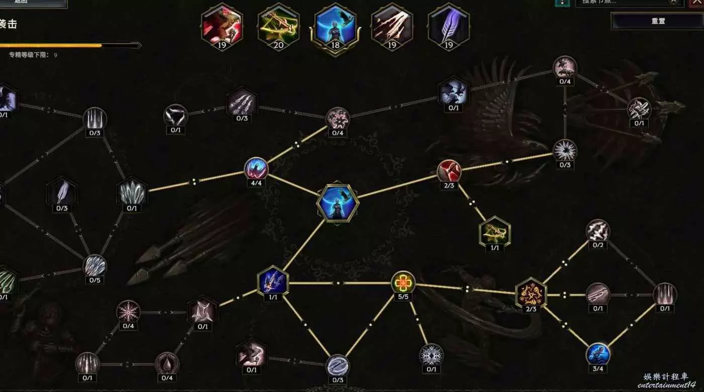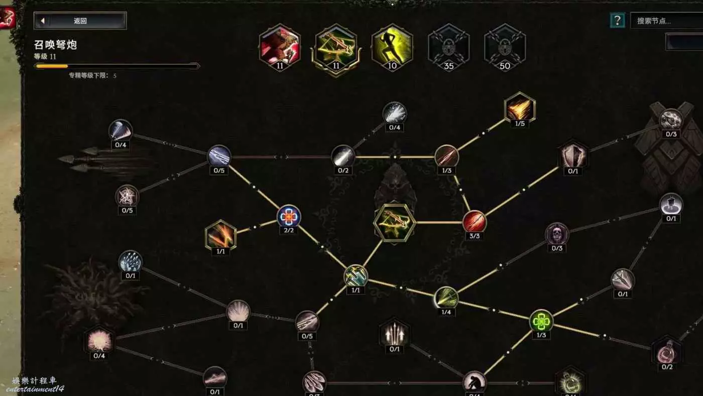 核心輸出技能,弩炮,24級如圖 技能等級不夠優先去掉減攻速增傷或者減傷害增攻速的點~