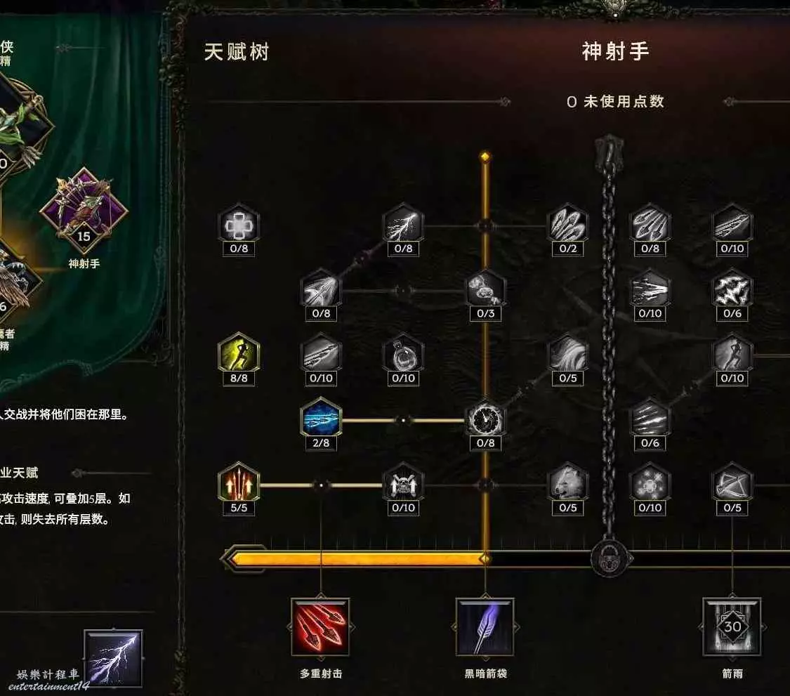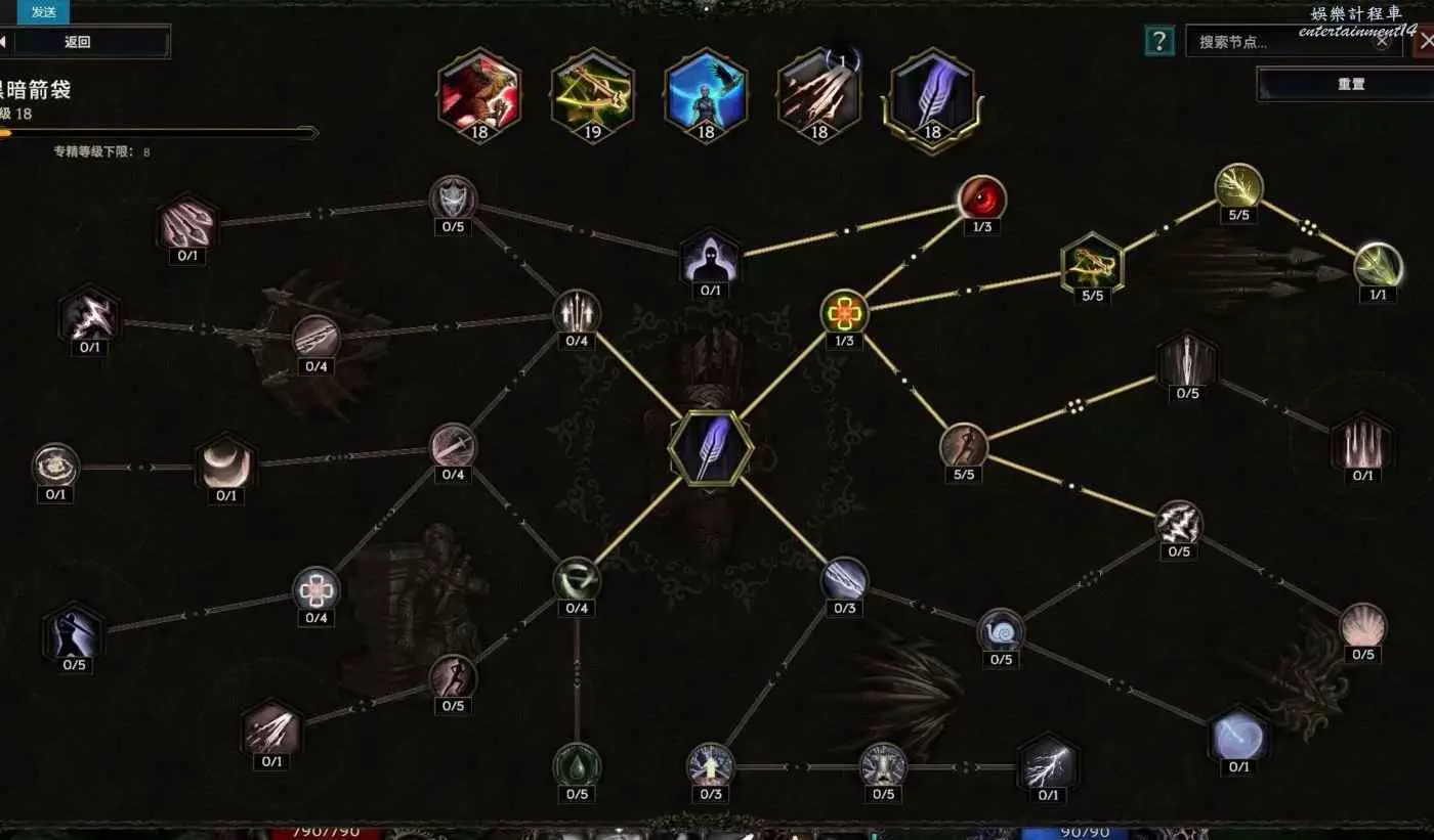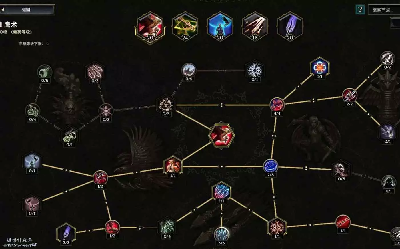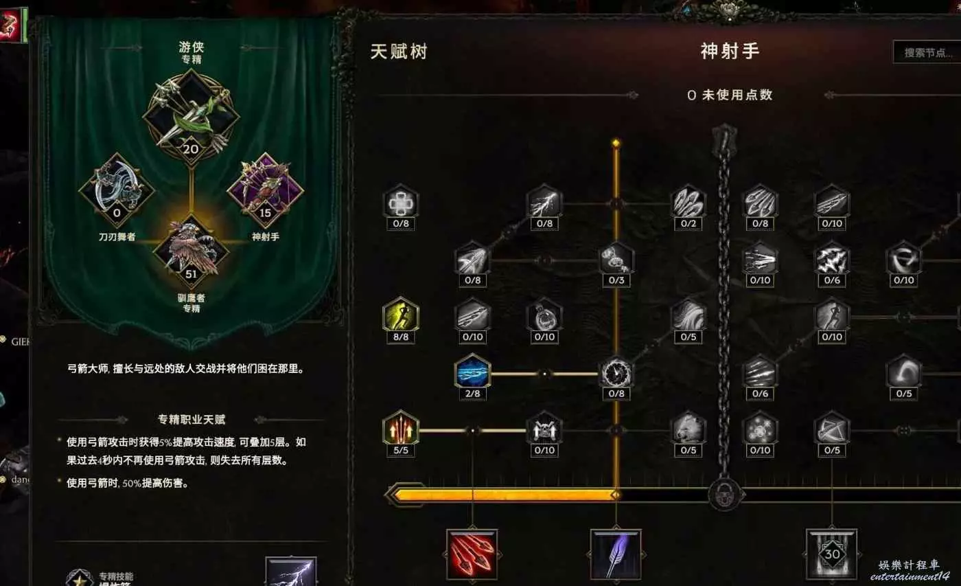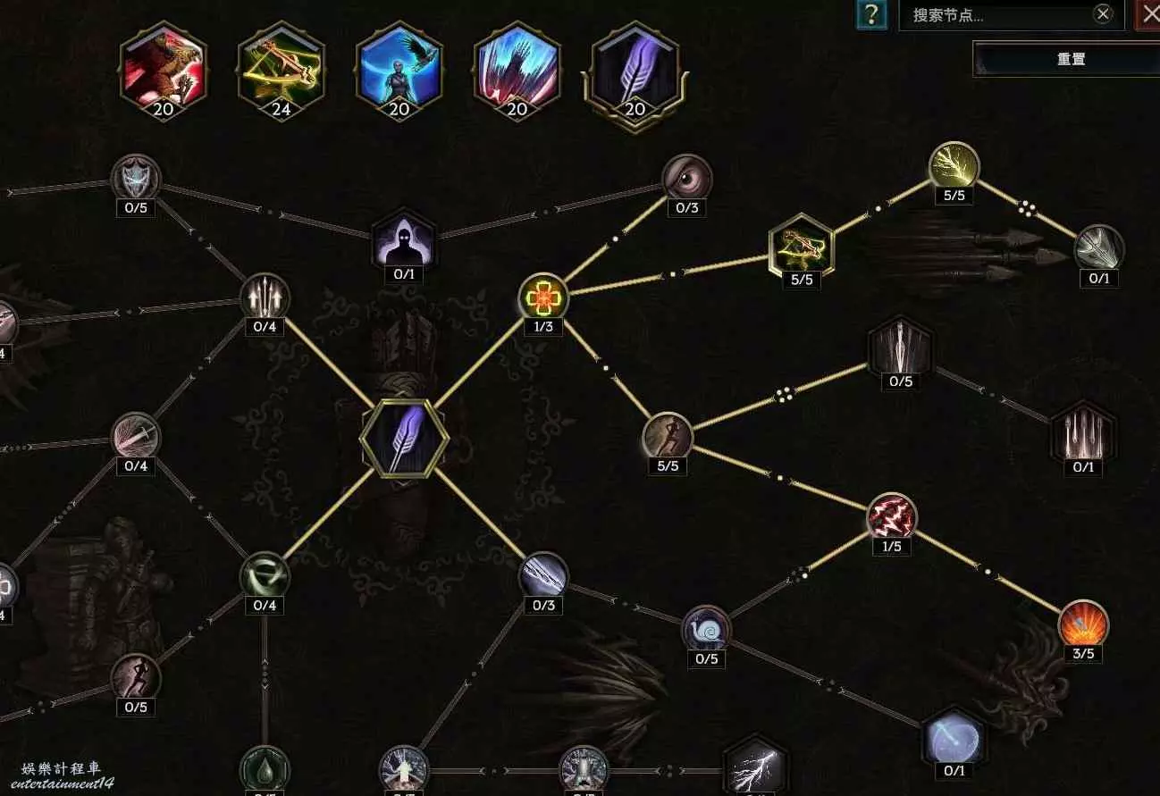 核心輸出技能,弩炮,24級如圖 技能等級不夠優先去掉減攻速增傷或者減傷害增攻速的點~