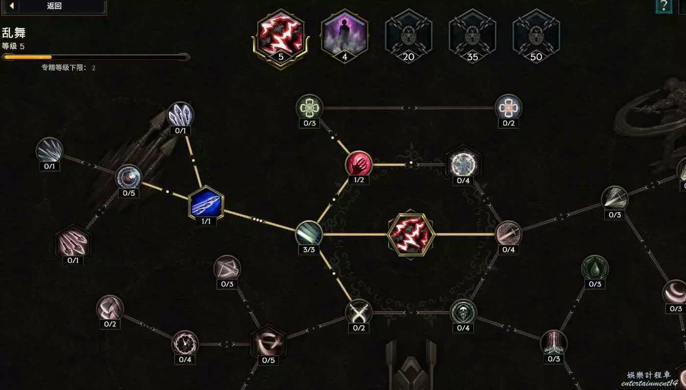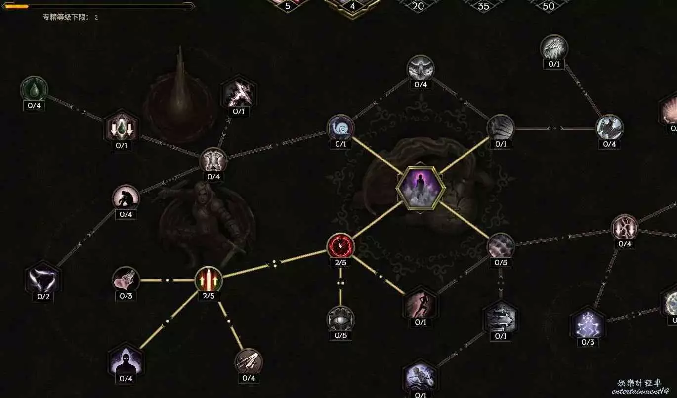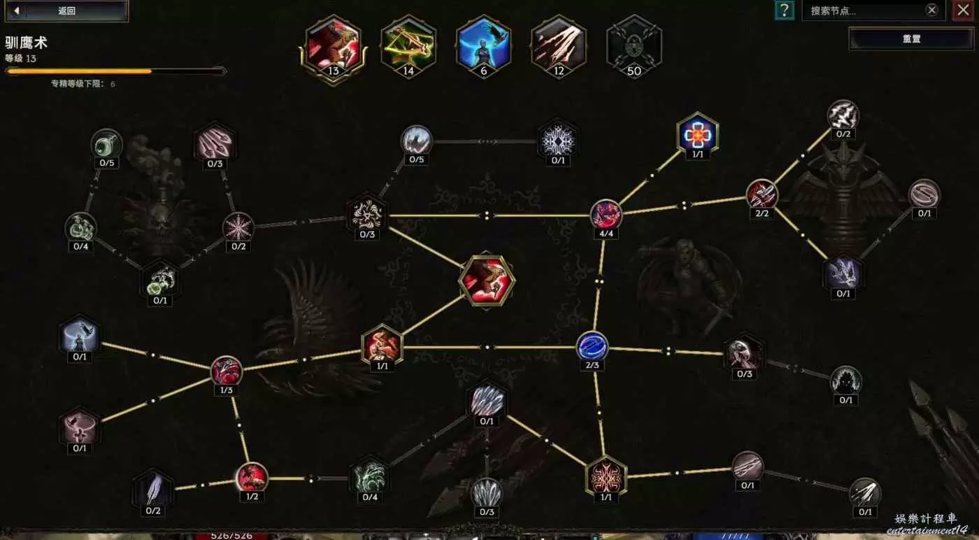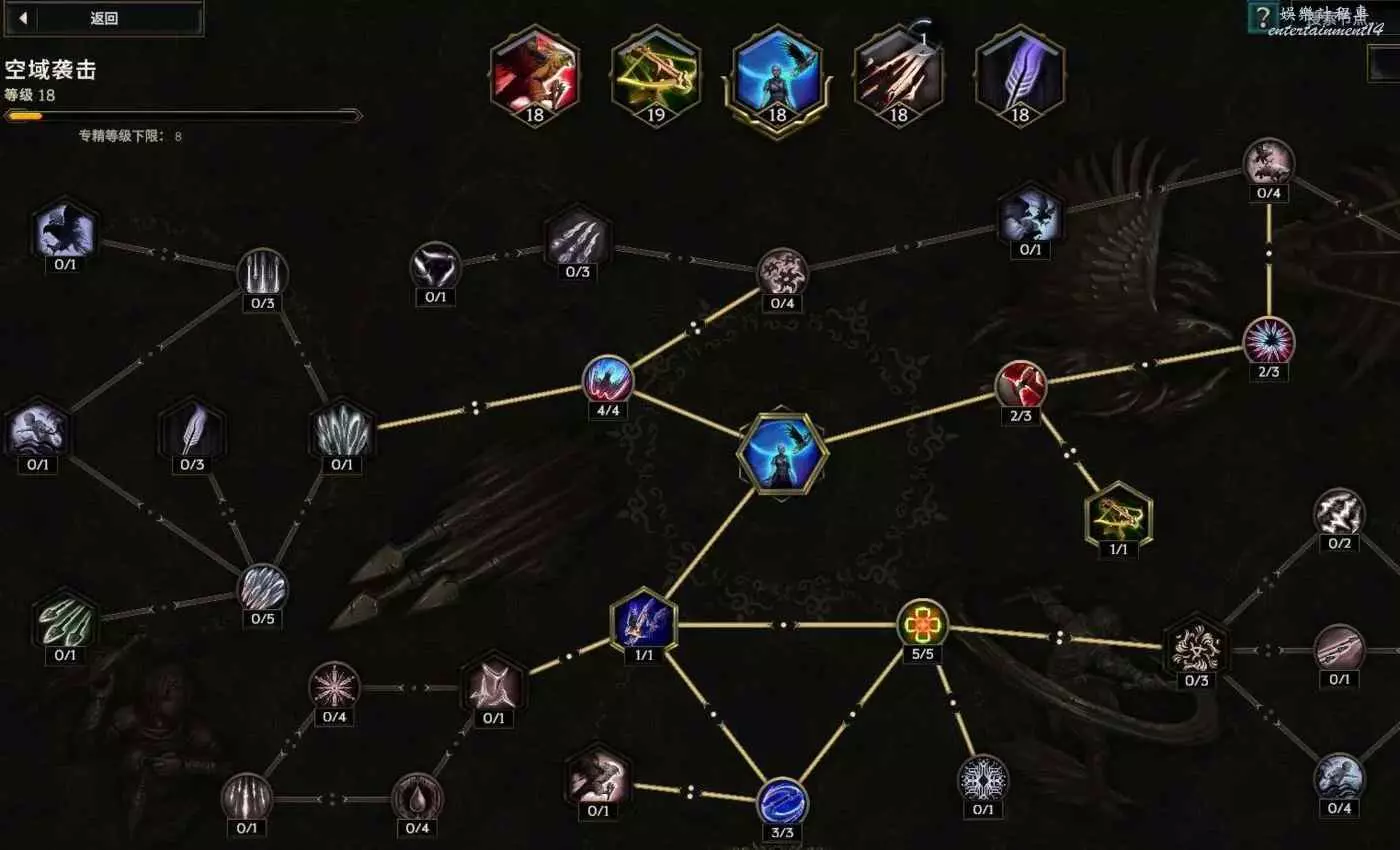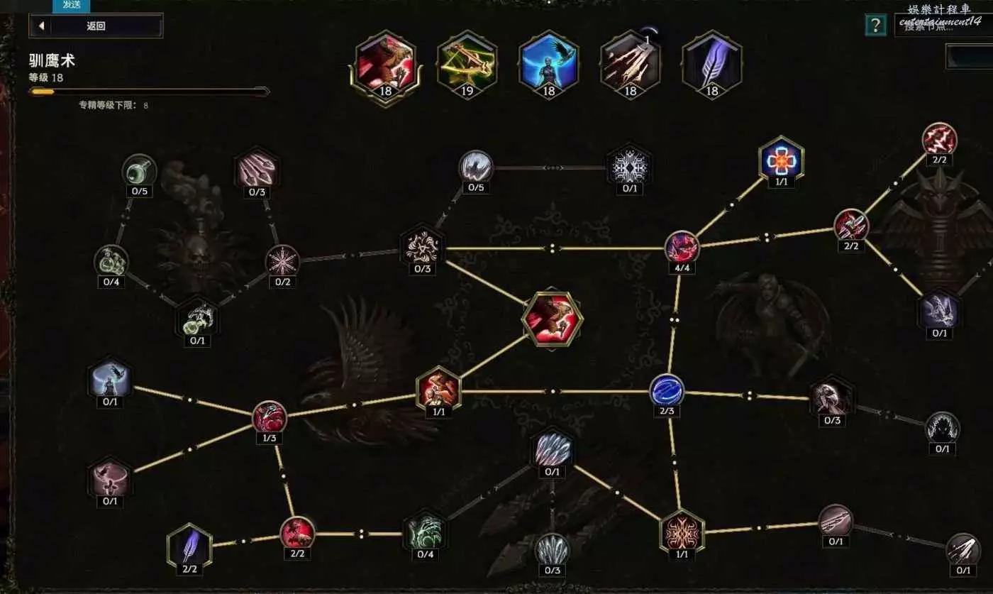 核心輸出技能,弩炮,24級如圖 技能等級不夠優先去掉減攻速增傷或者減傷害增攻速的點~