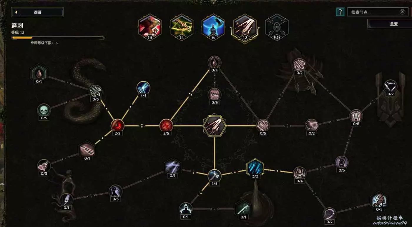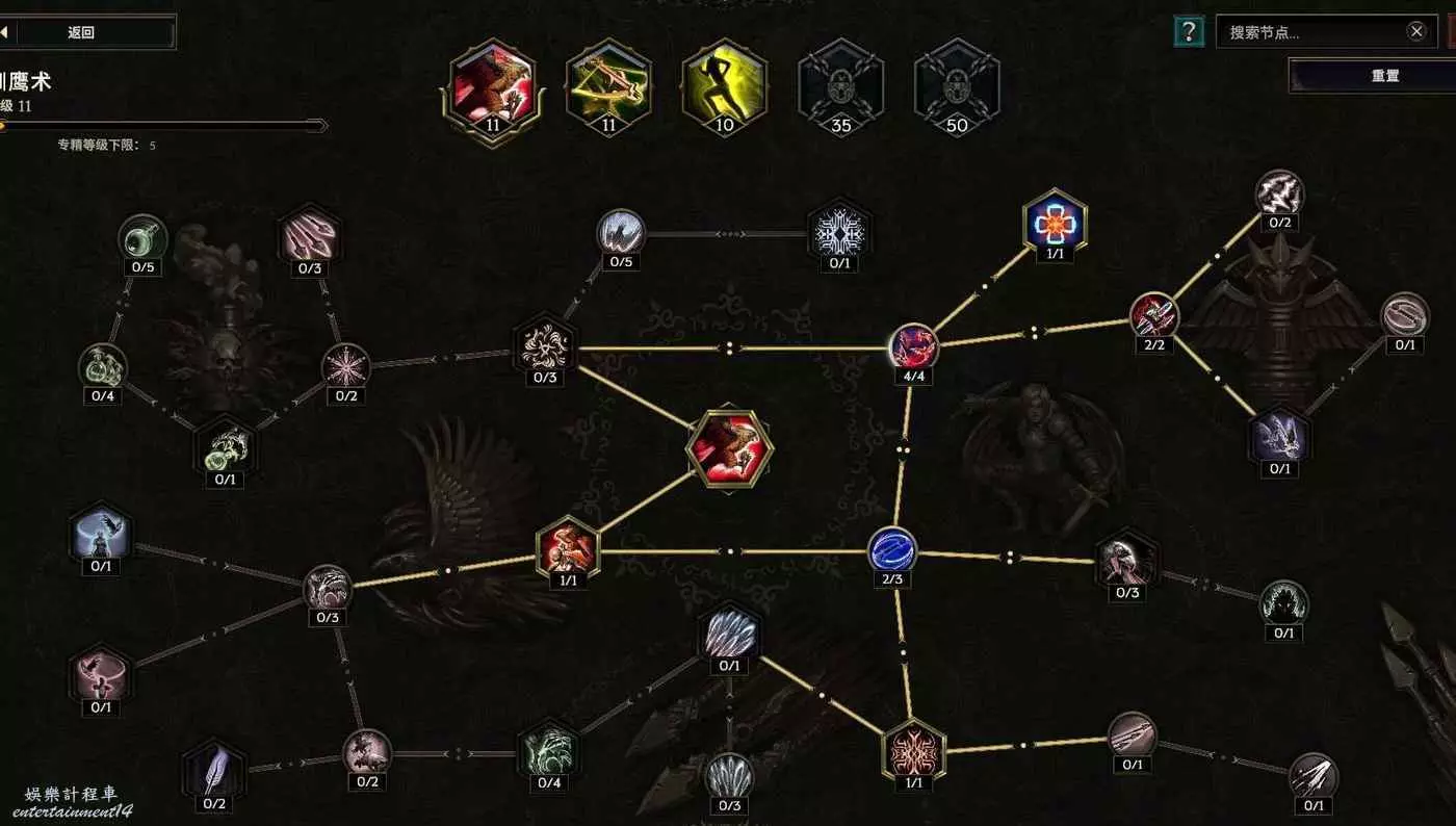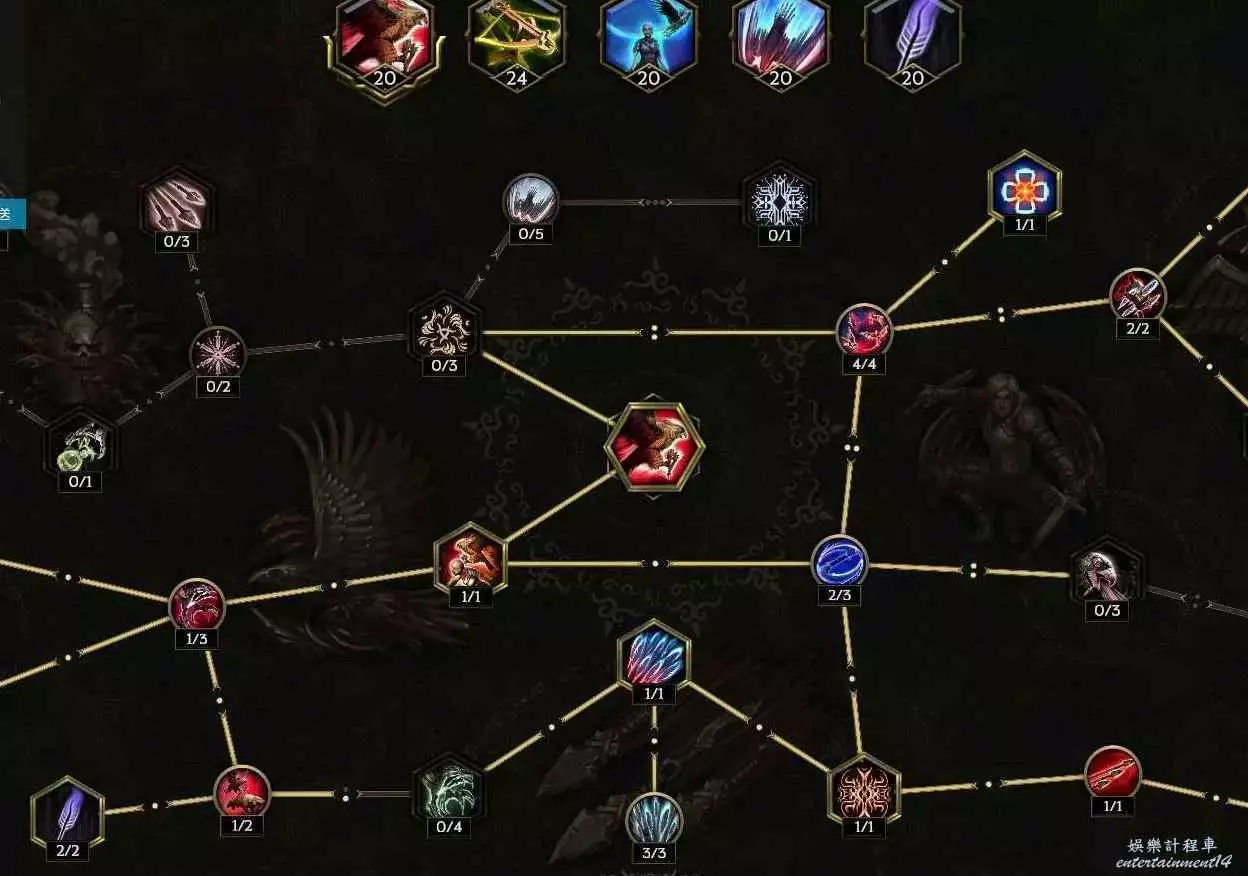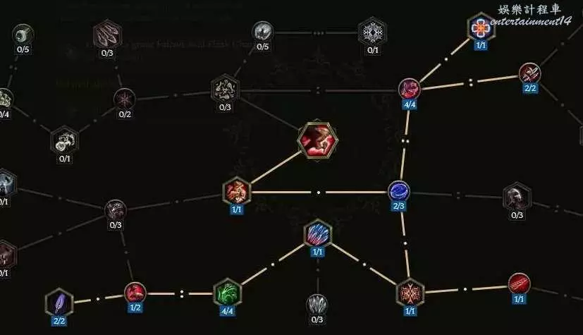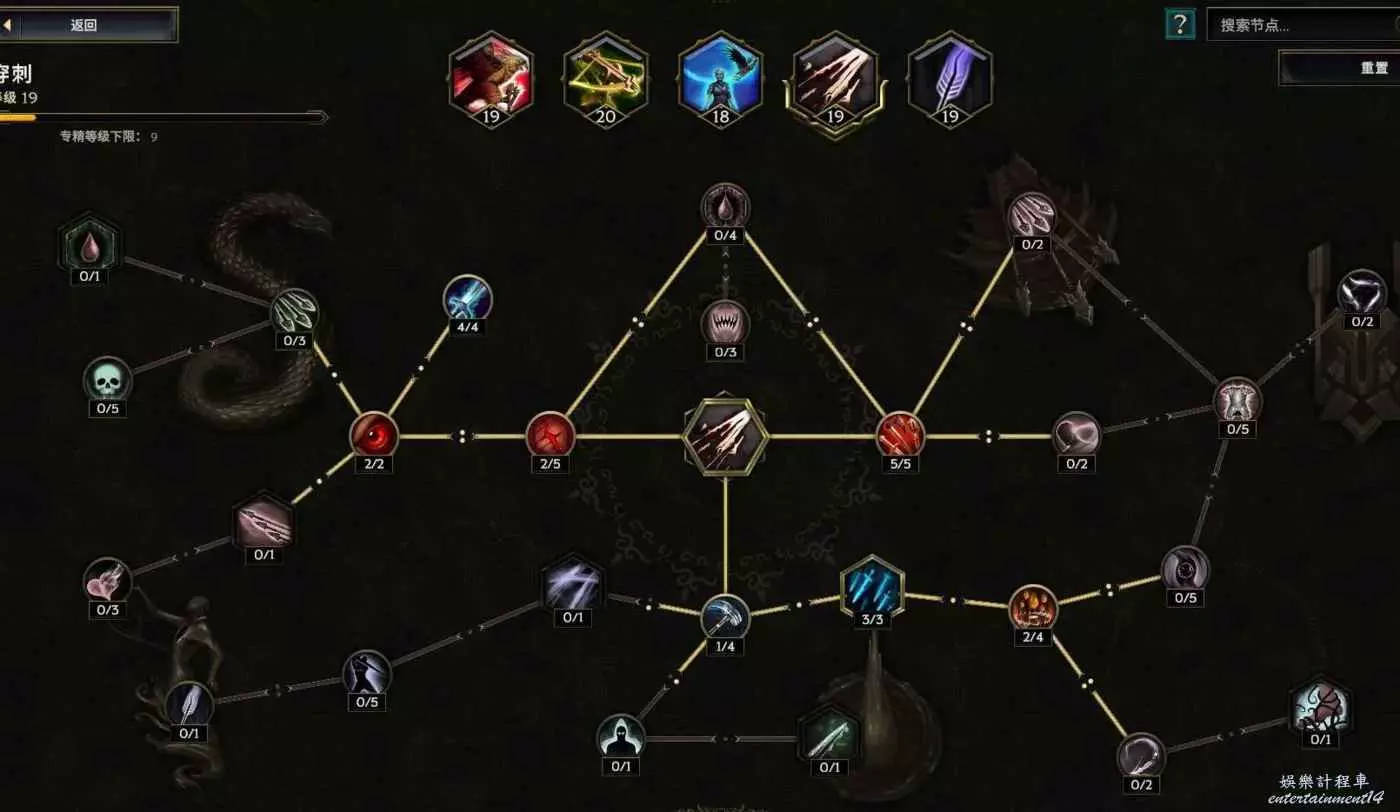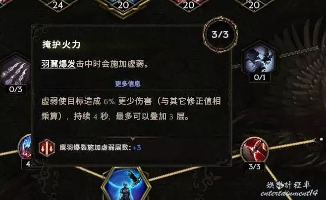 沒法自己攻擊,點個這個 給boss上滿10層碎物抗 至少提升以及6%爆傷,刷圖打的怪多還有10%跑速的加成~如果沒有合成出來幾率粉碎護甲的朱拉手套,那麼把鷹羽以及減耗還有減延遲的節點挪出來給左上角的幾率粉碎護甲 ,穩定10層削弱護甲
