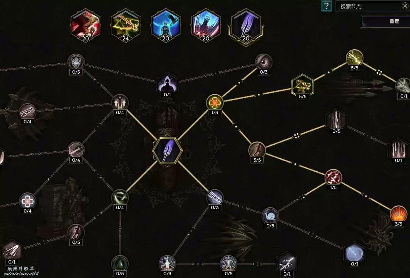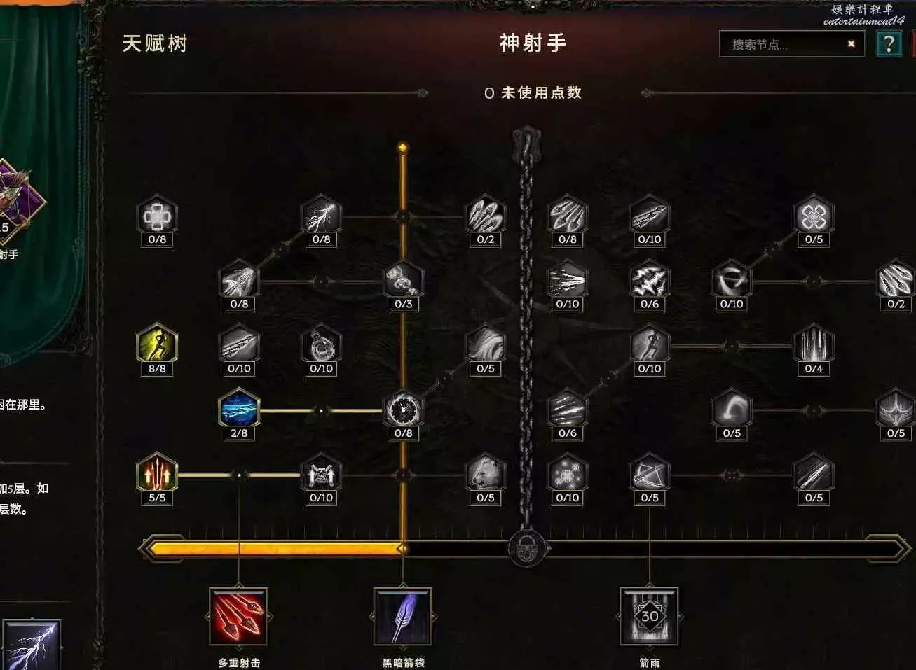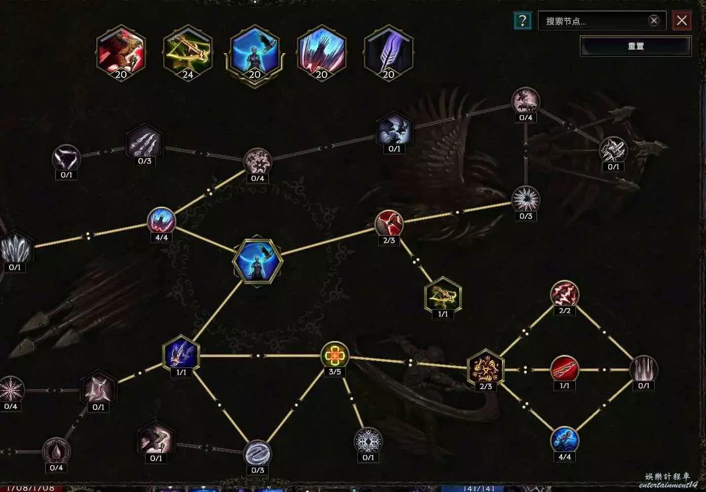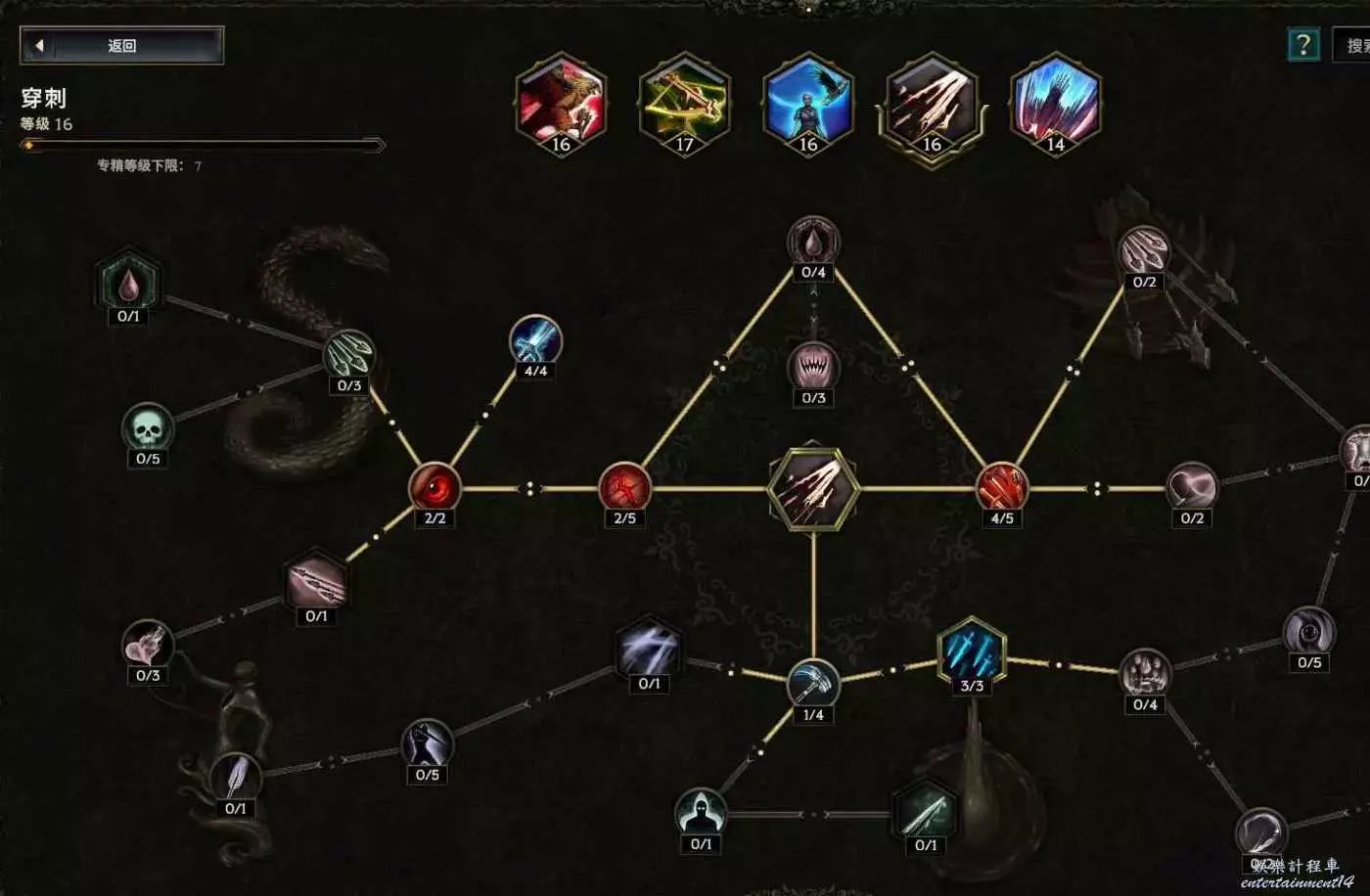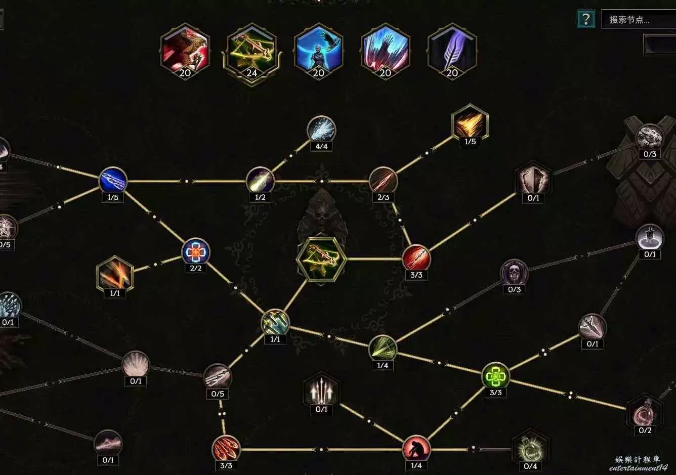 沒法自己攻擊,點個這個 給boss上滿10層碎物抗 至少提升以及6%爆傷,刷圖打的怪多還有10%跑速的加成~如果沒有合成出來幾率粉碎護甲的朱拉手套,那麼把鷹羽以及減耗還有減延遲的節點挪出來給左上角的幾率粉碎護甲 ,穩定10層削弱護甲