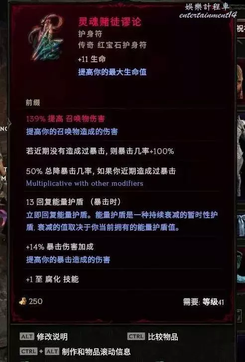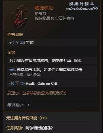 既然是玩直接傷害寵物 暴擊爆傷肯定要找的,賭徒項鍊就很適合這個bd,弩炮有個節點4點,你的暴擊爆傷百分百轉弩炮。賭徒項鍊帶上,給任務+100%的基礎暴擊,如果人物最近沒有造成暴擊 暴擊率能夠維持,既然召喚流,完全可以實現人物不攻擊 專心走位召喚即可 輕鬆解決了很多召喚流暴擊難找的難點痛點。這項鍊也很容易獲取,10級左右帳本支線任務就給。暴擊解決了,同時人物爆傷也比召喚爆傷好堆~不找暴擊專心找爆傷,裝備好做,提升很大