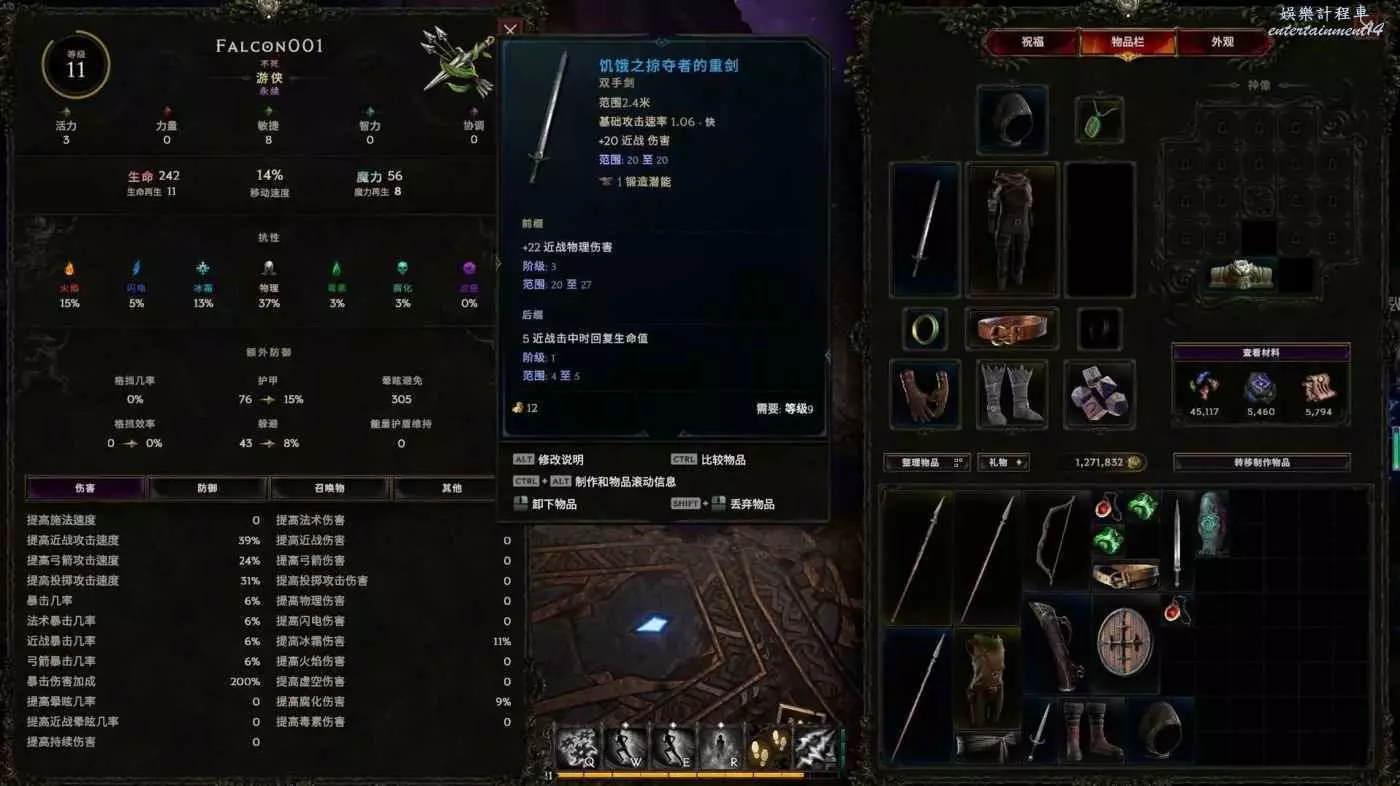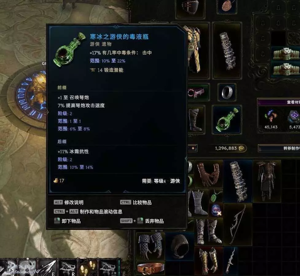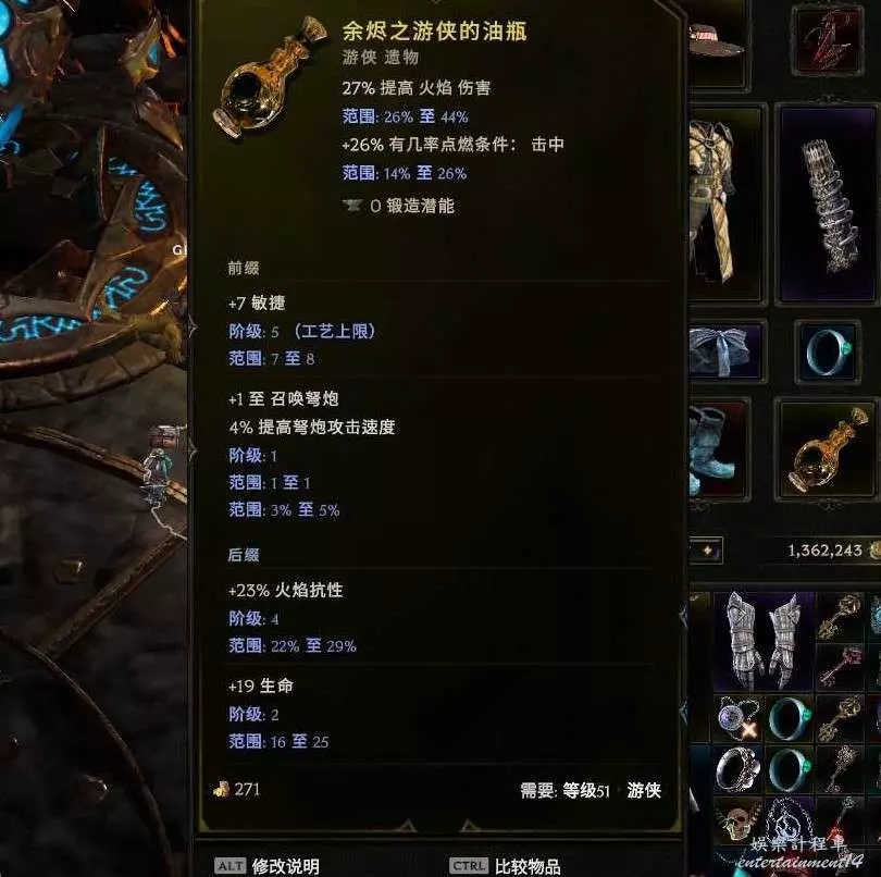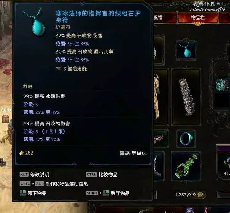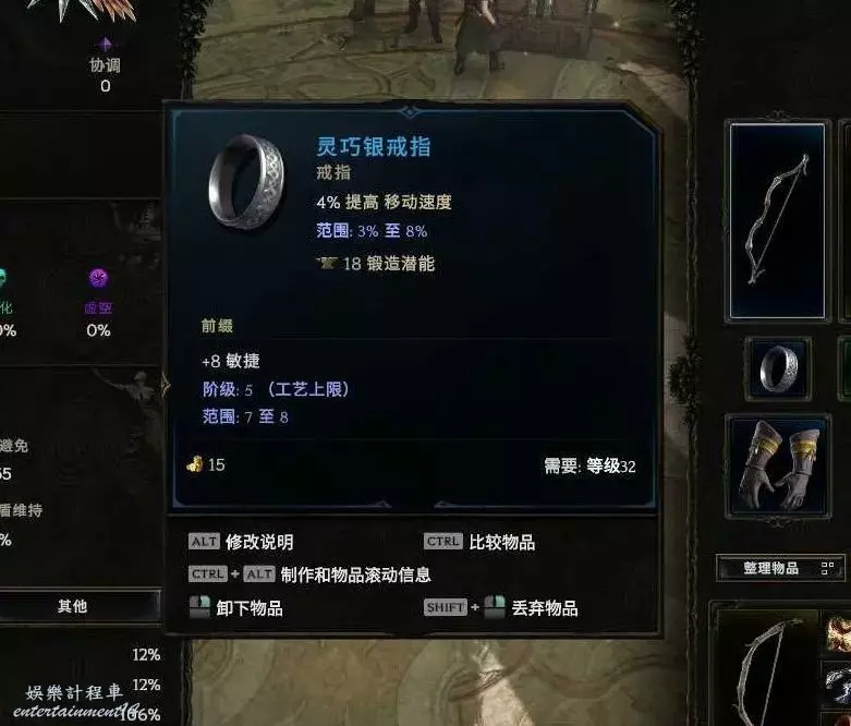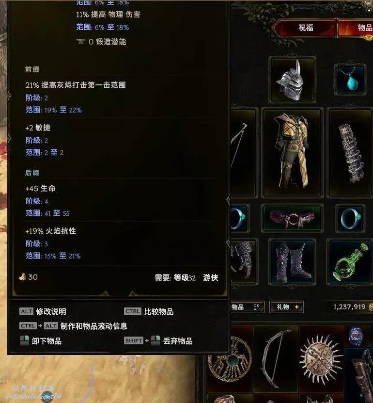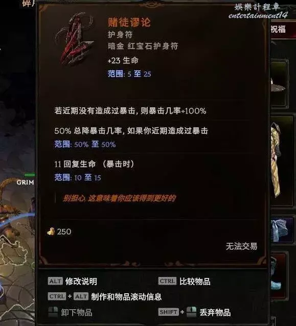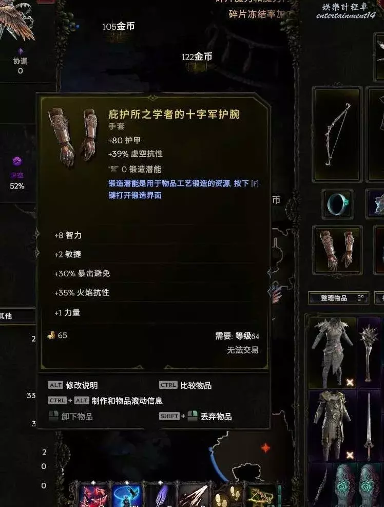 裝備很隨意 只是稍微弄了下攻擊詞綴 抗性 血量沒管 按F鍛造可以增加裝備屬性