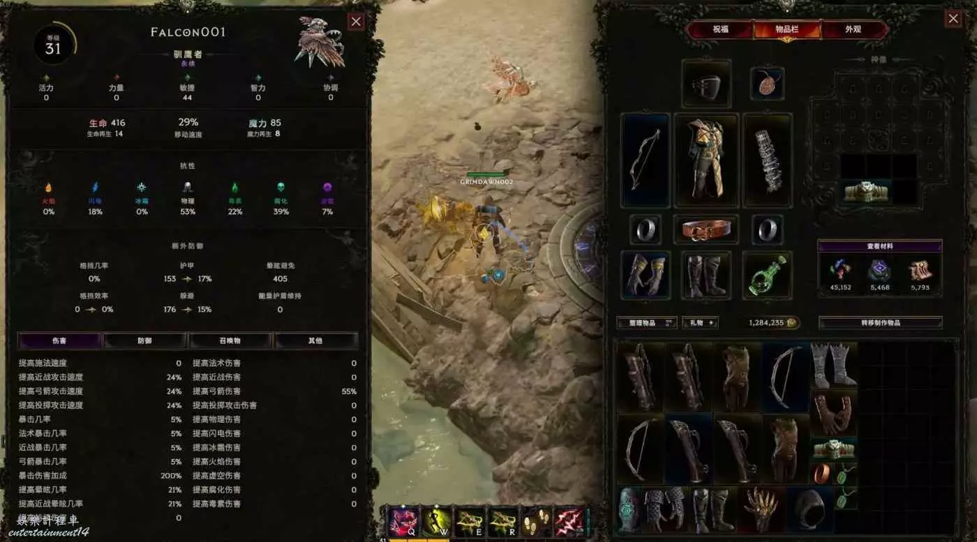 這階段增傷詞綴為 敏捷 召喚物傷害 各種弓點傷 和武器帶的寵物弓傷害也是點傷 以及物理傷害% 敏捷最關鍵