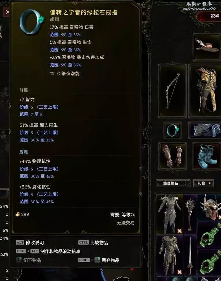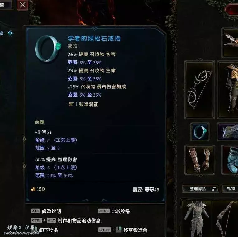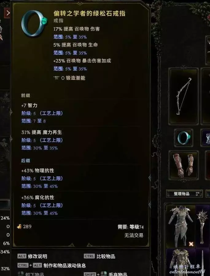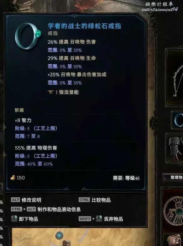 戒指:蛋白石基底最好 綠松石也行 首碼 敏捷 智力(召喚傷害也行 差點意思) 字尾 生命 抗性 暴擊避免 耐傷等