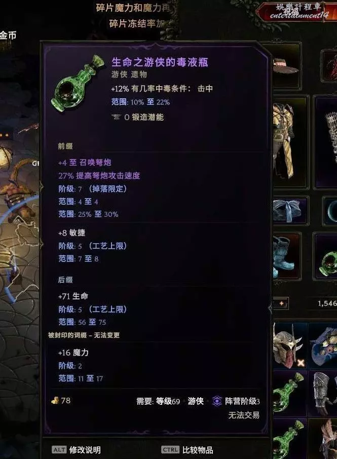 遺物:任意基底,帶抗性更好,首碼弩炮等級,敏捷 字尾生命 抗性等