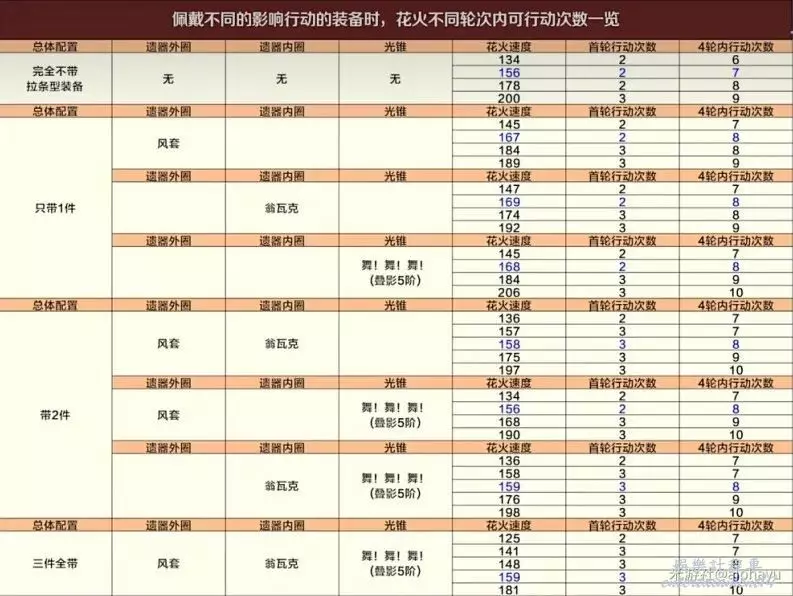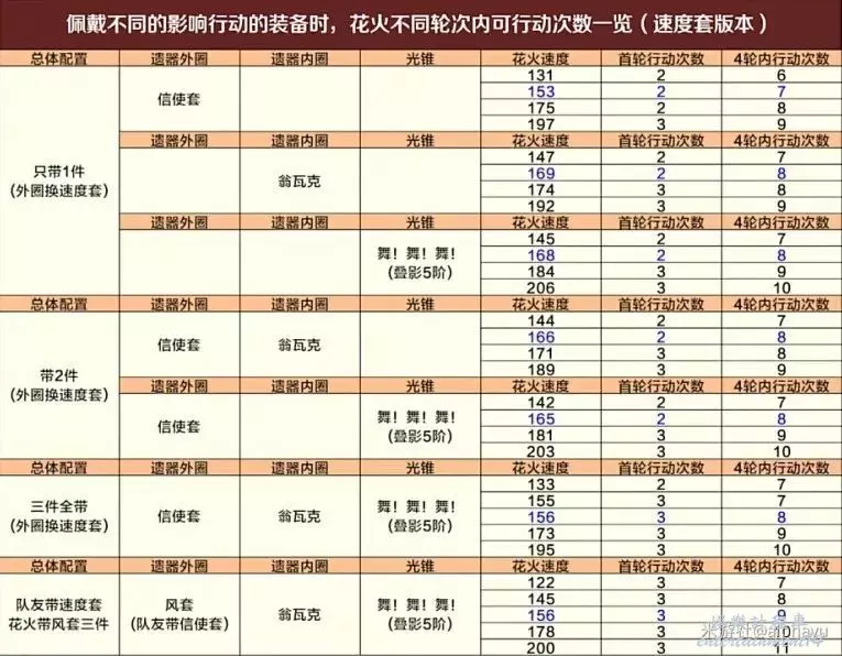 附花火各裝備行動閾值圖(圖源B站卡特亞影片BV1sW421P7t8)