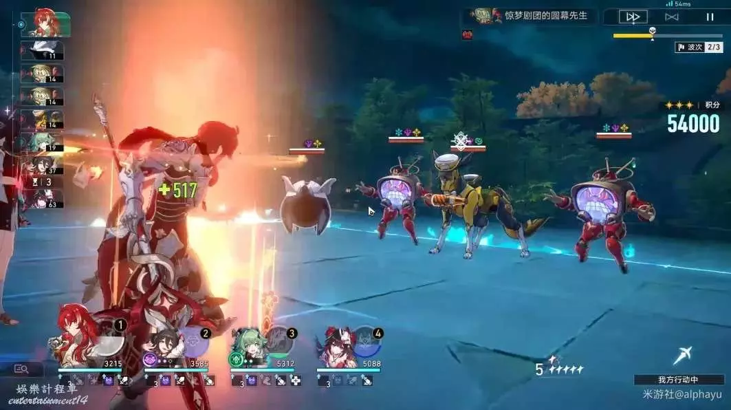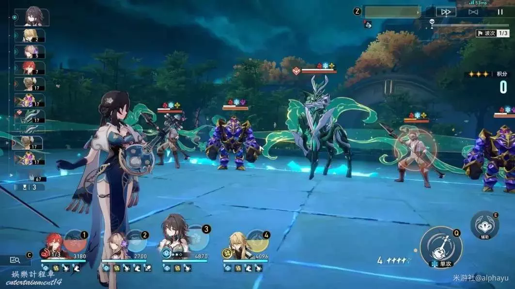 ②停雲和霍霍負責在第2波對單個的電視機進行表情轉換(打法分析會涉及),其他時候停雲一直使用戰技充能即可