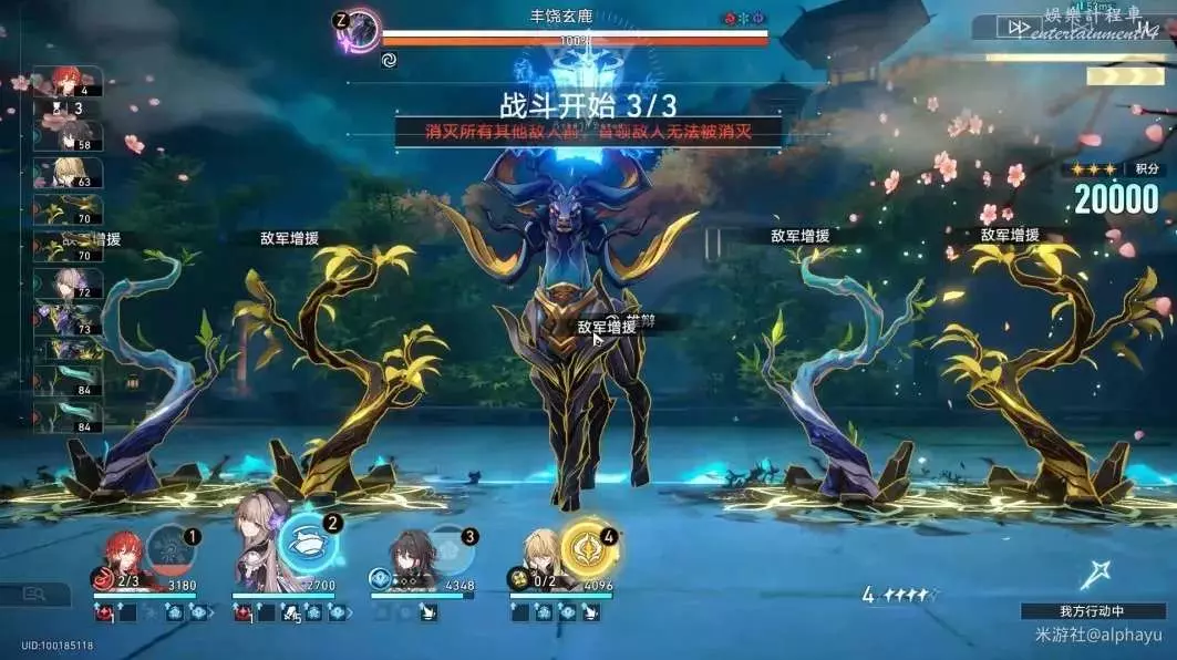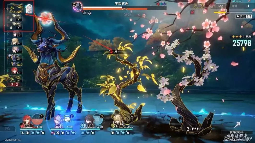 ③羅刹可以換成符玄,羅刹主要作用是第1波普攻破韌,直接可以啟動姬子的追擊;符玄進隊主要使用大招在第3波樹枝進行破韌