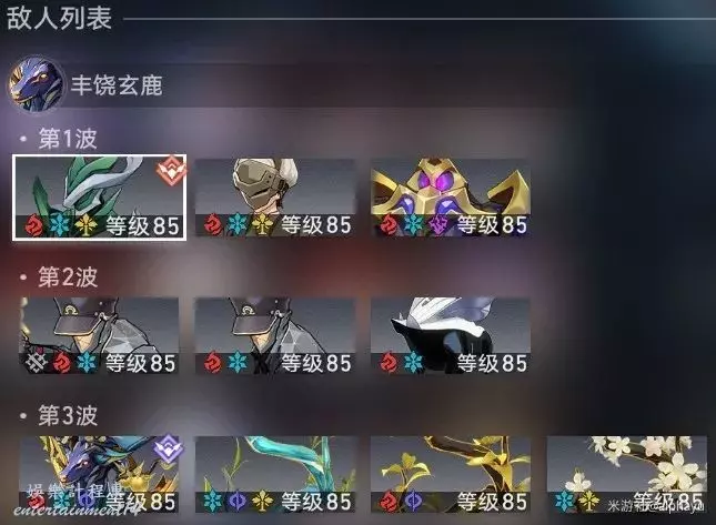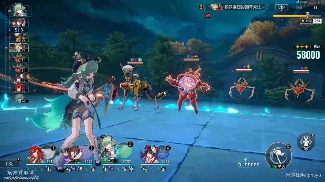 ①影片中進入第3波時,正好觸發【怪誕逸聞】,清理第一波的弱冰弱虛數樹枝。如果沒有觸發,則需要交大招。後續第二波將會召喚弱火弱量子的樹枝