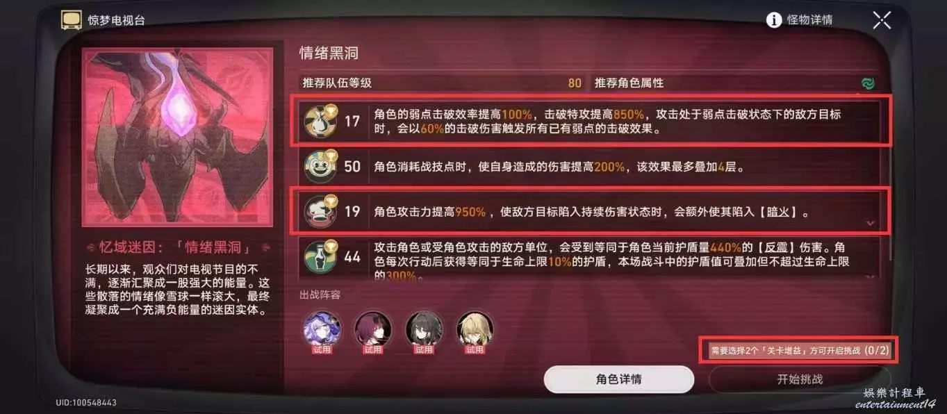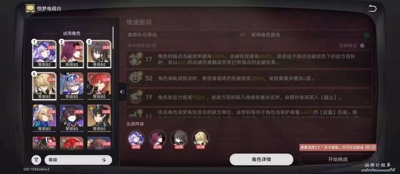 需要選擇2個「關卡增益」,方可開啟挑戰