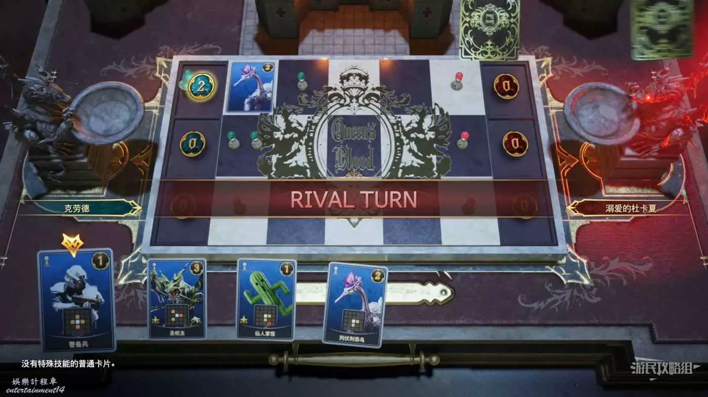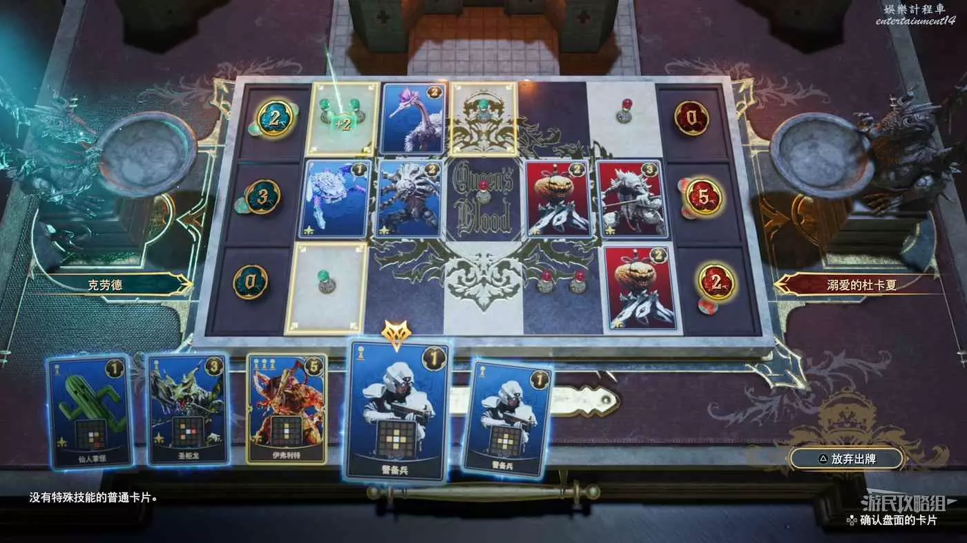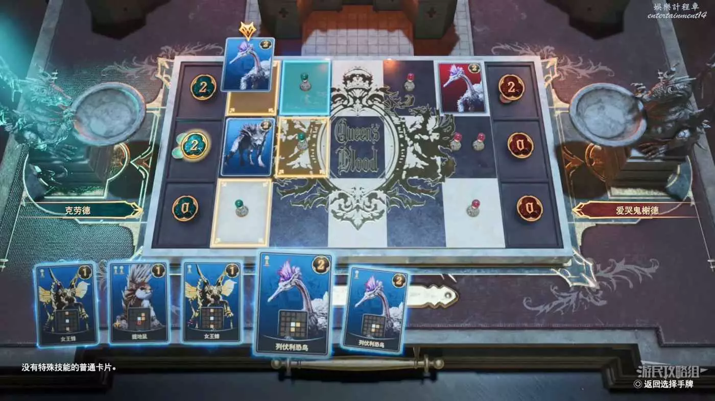在女王之血中,你需要將卡牌放置在3條路線上:頂部-中部-底部。