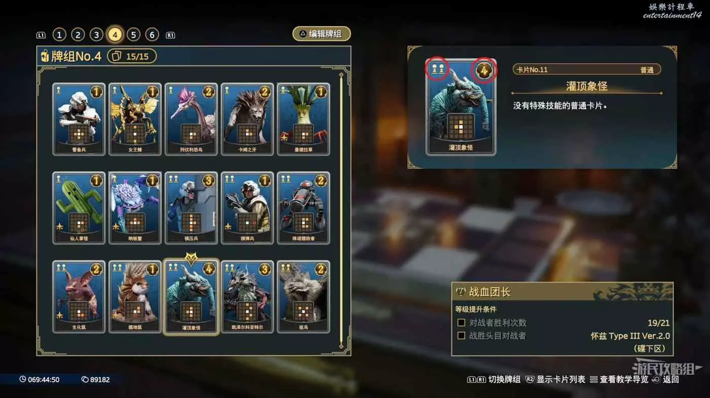 將098泰坦替換為114秘銀魔像,將008卡姆之牙替換為043死亡厲爪。