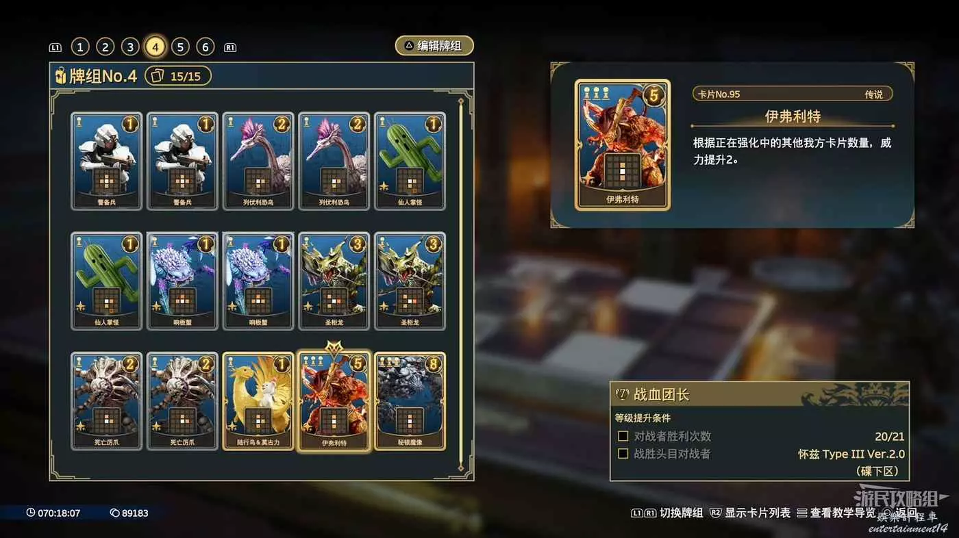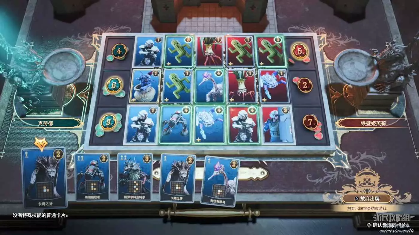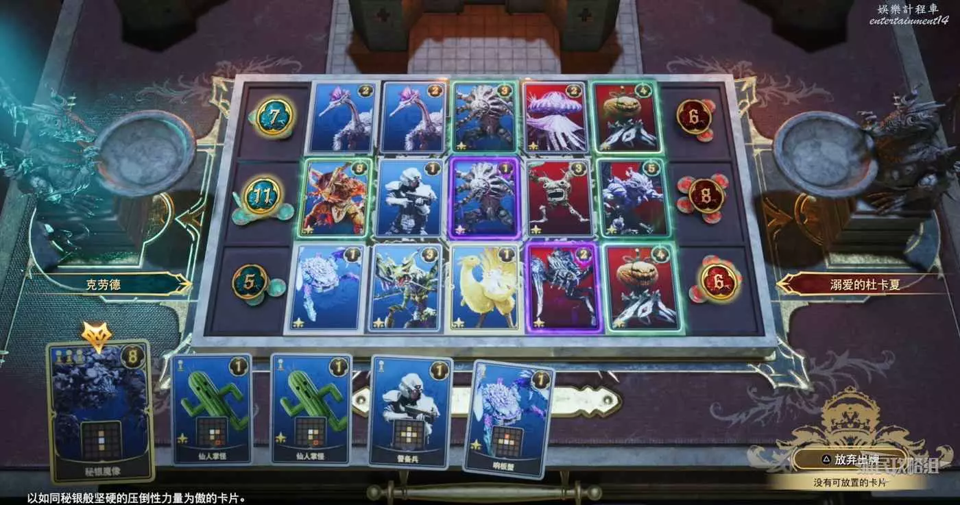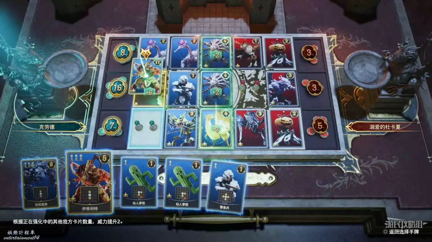 用列伏利伏鳥、警備兵和陸行鳥&莫古力推進頂部和中間的路線。將伊弗利特留到最後,將他放在最左邊的第一個中間路線上,如果你用仙人掌怪和響扳蟹給其他卡牌增加了buff,他將獲得巨大的額外得分。