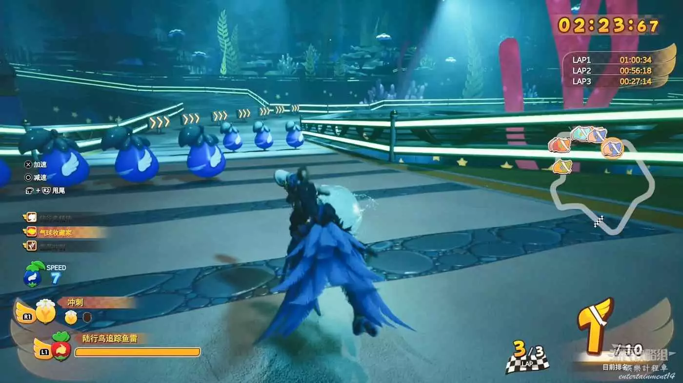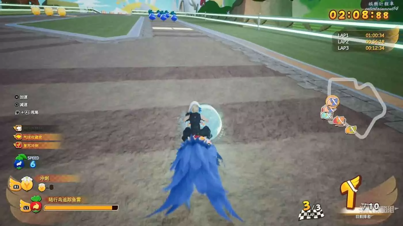 穿過閃爍的藍色和黃色圖示以填滿能量並獲得額外積分,記得使用L2刹車和轉向。