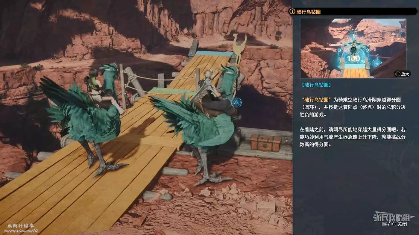 這個小遊戲讓你騎著震驚鳥穿越空中的環。每個環都有一個分數值。為了獲得高分,必須穿過所有的環。你會在副本任務“信任的羈絆”中訪問滑翔訓練場(這也解鎖了科雷陸峽谷地區的震驚鳥)。