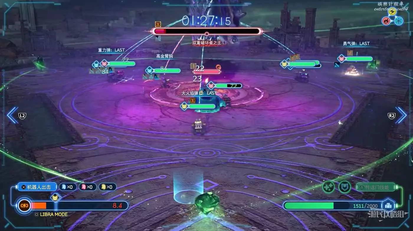 1、它會在敵人頭頂顯示弱點圖示,因此只需玩與該圖示匹配的機器人。在螢幕左下角看到一個ATB條,每當它充滿時,你可以按X部署3種類型中的一種機器人之一。