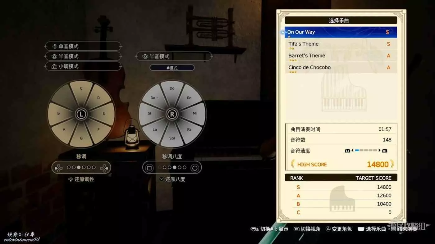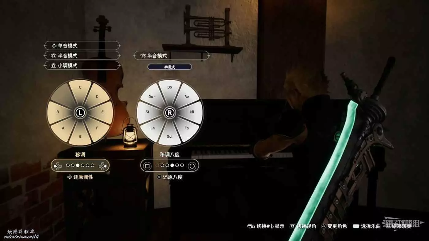 鋼琴演奏是一個節奏迷你遊戲,你必須按下左右搖杆來彈奏鋼琴上的音符。