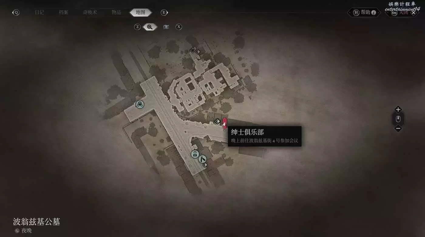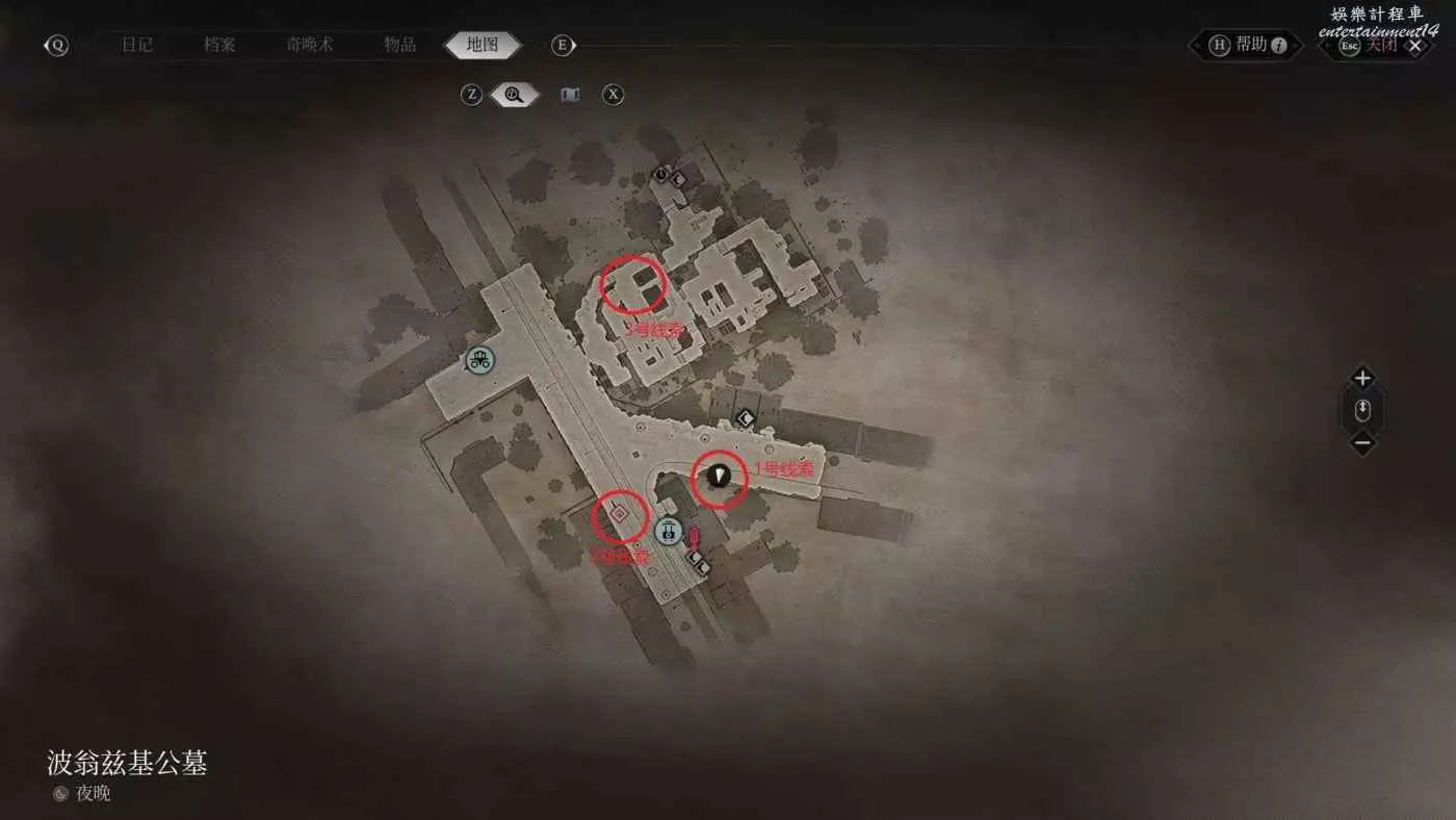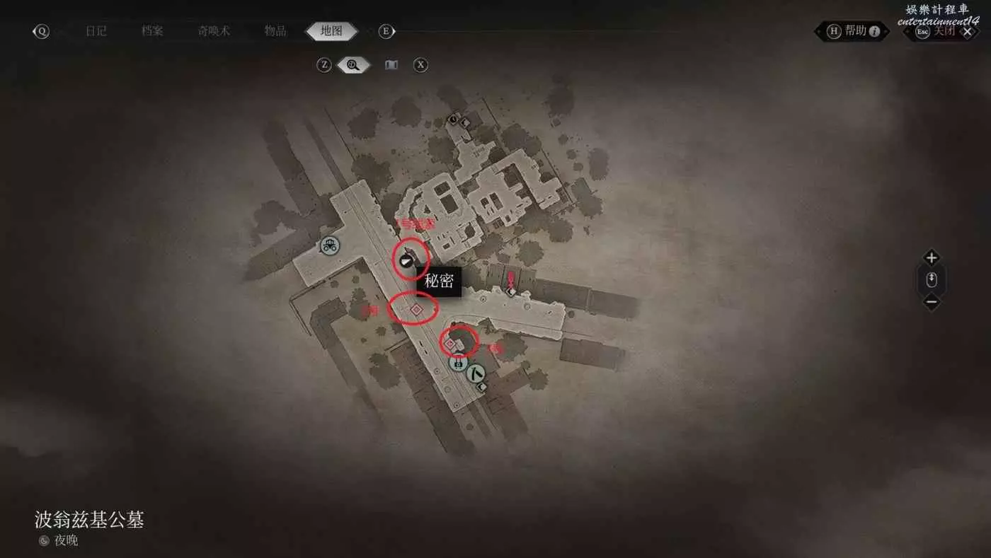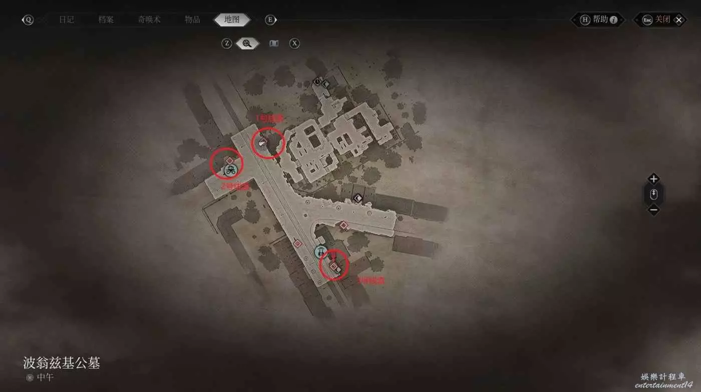 時間與位置:第一章波翁茲基公墓,白天,地圖右下方興趣點