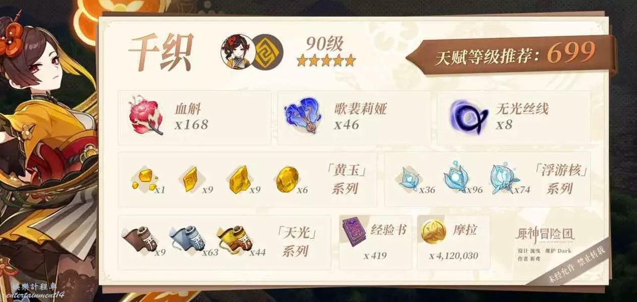 原神 (Genshin Impact) 千織突破素材收集攻略