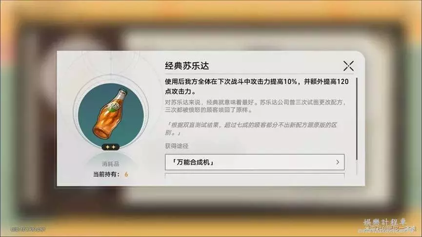 效果:使用後我方全體在下次戰鬥中攻擊力提高10%,並額外提高120點攻擊力。