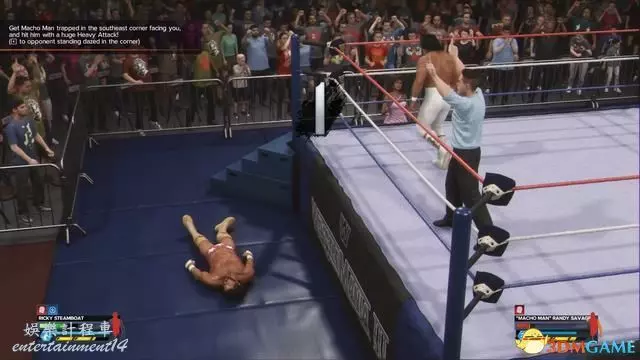 在抓取時輸入方向可以將對手推往擂台邊,通過繩子彈回來後可以進行追加攻擊。