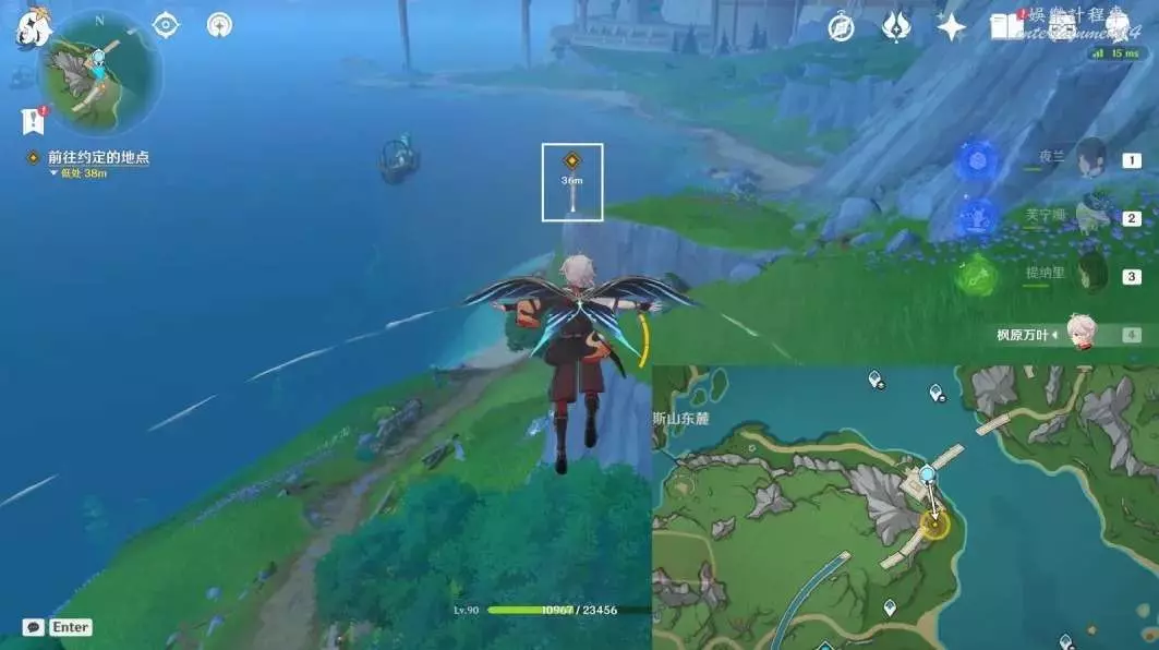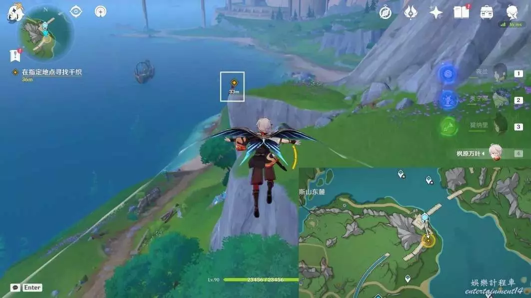 傳送黎翡區神像,往地圖的南方向飛,與千織對話