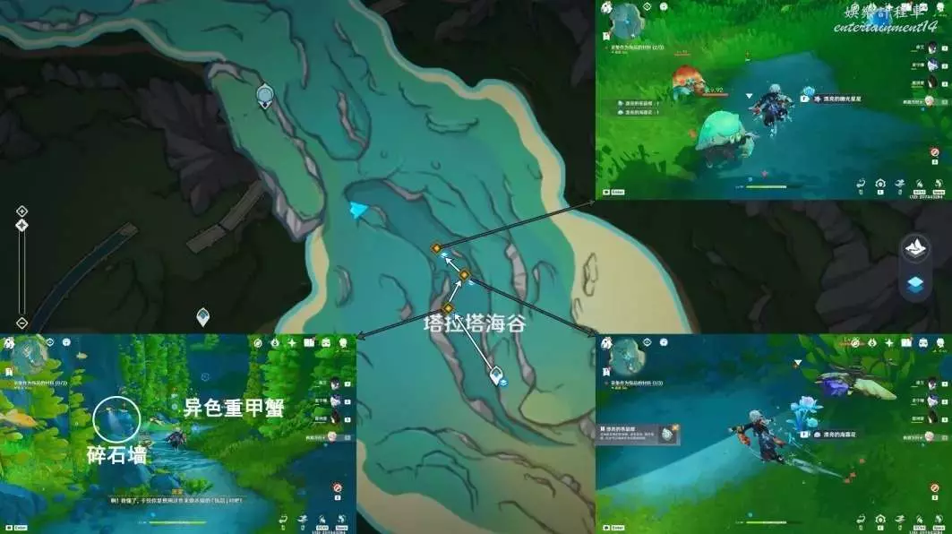 1.獲得異色重甲蟹能力,摧毀碎石牆,拾取漂亮的蒼晶螺;