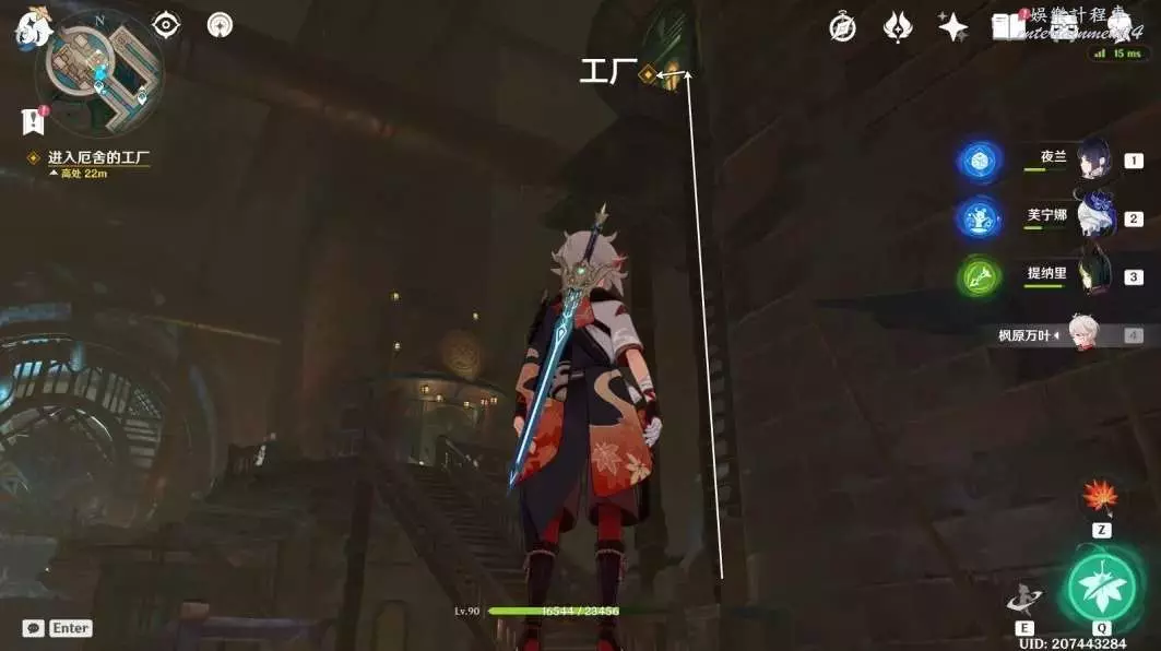 往地圖的北方向頭頂看,爬樓梯進入工廠,進入秘境