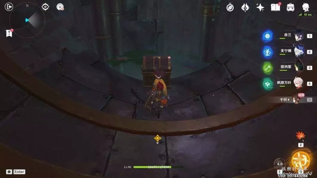 進入通道口,獲得寶箱③,下潛水中,進入洋流