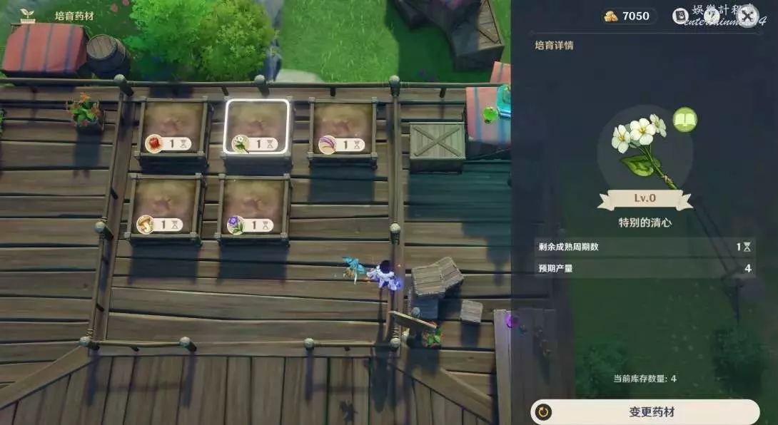 培育的時候,有兩個新的藥材,清心和薔薇,可以把嘟嘟蓮拿下來。